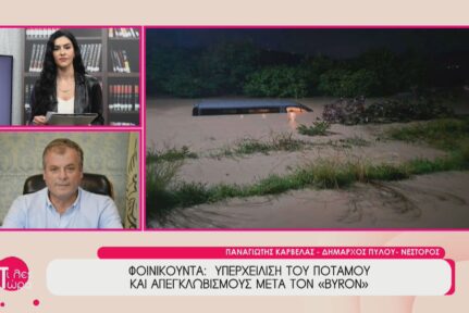 Ο Δήμαρχος Πύλου-Νέστορος, Δ. Καρβέλας στο ‘’Τι Λες Τώρα’’, για την υπερχείλιση του ποταμού και τους απεγκλωβισμούς μετά τον «Byron» (video)