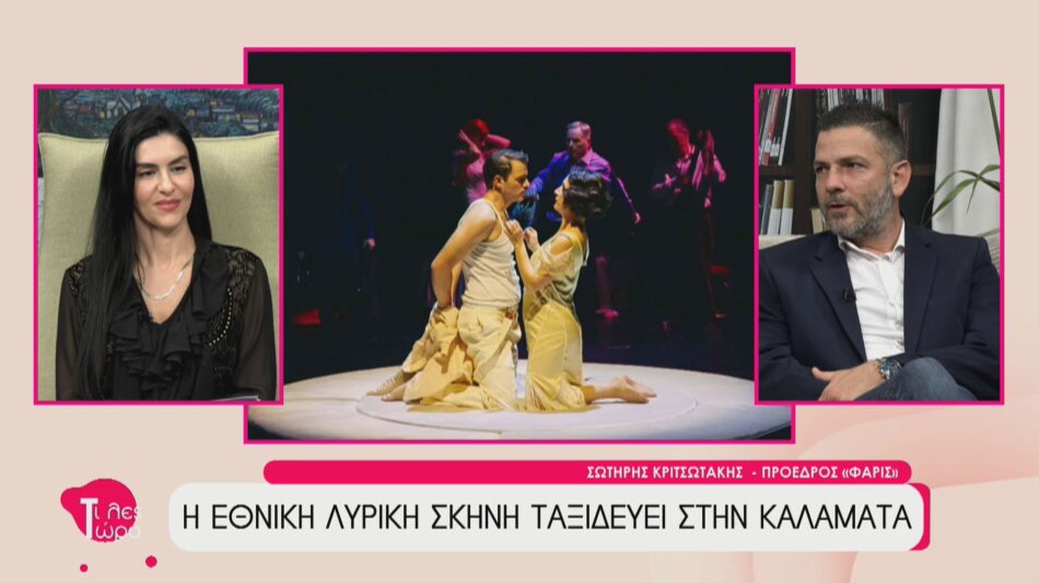 Ο Σωτήρης Κριτσωτάκης, Πρόεδρος της ‘’ΦΑΡΙΣ’’, καλεσμένος στην εκπομπή ‘’Τι Λες Τώρα’’ με την Αναστασία Μάντζαρη, μίλησε για το πλούσιο πρόγραμμα παραστάσεων και εκπαιδευτικών δράσεων της Εθνικής Λυρικής Σκηνής (ΕΛΣ) ,το οποίο θα φιλοξενηθεί στο Μέγαρο Χορού Καλαμάτας. Η πρωτοβουλία αυτή γίνεται