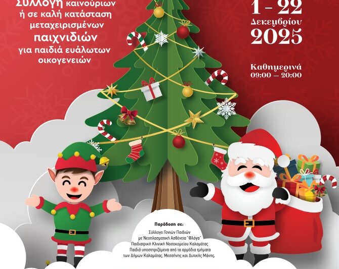Η συλλογή θα πραγματοποιηθεί έως 22 Δεκεμβρίου 2025, καθημερινά από τις 09:00 έως τις 20:00, σε σημεία της Καλαμάτας, της Μεσσήνης και της Δυτικής Μάνης.