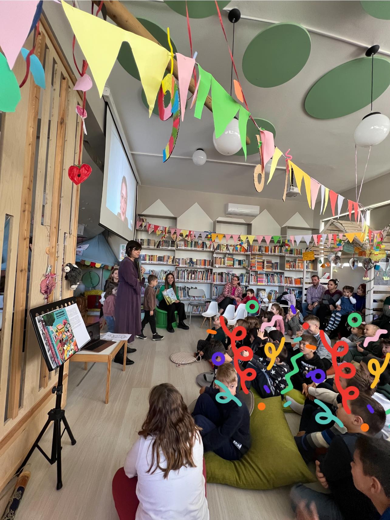 Τα παιδιά χόρεψαν και συμμετείχαν σε εικαστικό εργαστήρι που υλοποίησαν στο τέλος της εκδήλωσης οι εκπαιδευτικοί της βιβλιοθήκης Γαρυφαλιά Τεριζάκη και Μαρία Μιχαήλ.