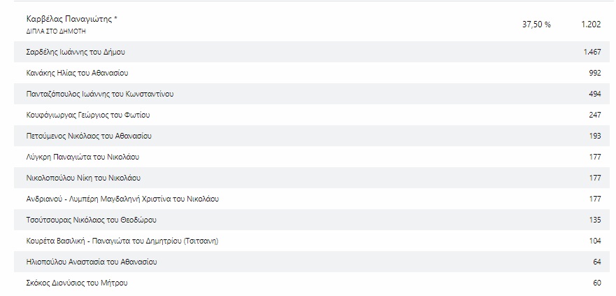 Η παράταξή του, «Διπλά στο Δημότη», έλαβε 5.498 ψήφους, έναντι των 5.068 που πήρε ο Δημήτριος Καφαντάρης, με την «Δύναμη Ελπίδας» να συγκεντρώνει ποσοστό 38,98%.