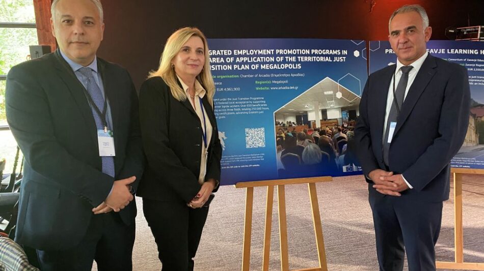 Μια ιδιαίτερα σημαντική διάκριση για τα Επιμελητήρια Αρκαδίας και Μεσσηνίας αποτέλεσε η παρουσίαση / προβολή του έργου των «Ολοκληρωμένων Προγραμμάτων προώθησης στην απασχόληση στην περιοχή εφαρμογής του Εδαφικού Σχεδίου Δίκαιης Μετάβασης Μεγαλόπολης» ανάμεσα στα εννέα (9) Ευρωπαϊκά έργα που επιλέχθηκαν στο πλαίσιο του 5ου Ετήσιου Συνεδρίου της Πλατφόρμας Δίκαιης Μετάβασης, που διοργάνωσε η Γενική Διεύθυνση Περιφερειακής και Αστικής Πολιτικής της Ευρωπαϊκής Επιτροπής στις Βρυξέλλες από τις 21 έως τις 23 Οκτωβρίου 2025.