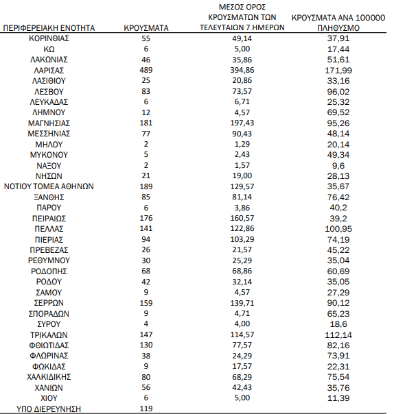 Σήμερα στην περιοχή της Μεσσηνίας καταγράφονται 77 νέα κρούσματα, η Αχαϊα έχει 158, η Αργολίδα 29, η Αρκαδία 58 νέα κρούσματα. Ενώ στην περιοχή της Κορινθίας τα κρούσματα σήμερα είναι 55 και στην Ηλεία 27.