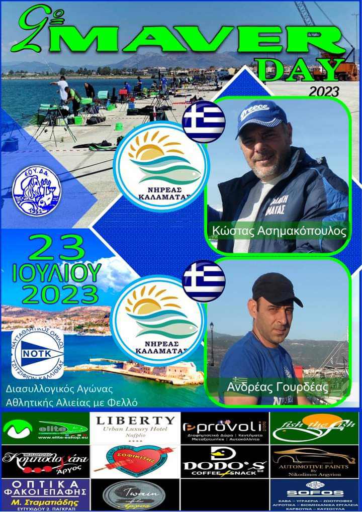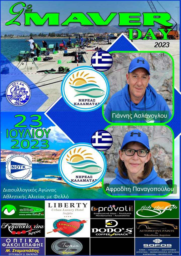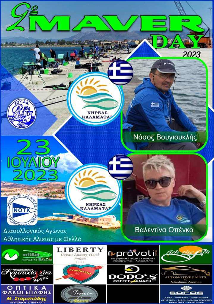 Ο σύλλογος αθλητικής αλιείας Νηρέας Καλαμάτας θα συμμετάσχει με 6 αθλητές και 4 αθλήτριες στον διασυλλογικό αγώνα αθλητικής αλιείας με φελλό από λιμενικές εγκαταστάσεις στο λιμάνι του Ναυπλίου στις 23/07/2023 που διοργανώνει ο Ν.Ο.Τ.Κ. σε συνεργασία με την Maver Hellas στα πλαίσια της διάδοσης της αθλητικής αλιείας.