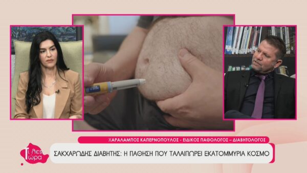 Στην εκπομπή «Τι λες Τώρα» με την Αναστασία Μάντζαρη φιλοξενήθηκε ο ειδικός παθολόγος και διαβητολόγος, Χαράλαμπος Καπερνόπουλος, σε μια επίκαιρη συζήτηση για τη μάστιγα του σακχαρώδη διαβήτη και της παχυσαρκίας. Ο κ. Καπερνόπουλος εξήγησε πώς ο διαβήτης αναπτύσσεται συχνά ως ένας ‘’αθόρυβος εχθρός’’ χωρίς συμπτώματα, ενώ έκρουσε τον κώδωνα του κινδύνου για την αύξηση των περιστατικών σε μικρά παιδιά. Ιδιαίτερη έμφαση δόθηκε στη στενή σύνδεση της νόσου με το περιττό σωματικό βάρος, το οποίο λειτουργεί ως ο βασικός ‘’πυροκροτητής’’ για την εμφάνιση της πάθησης. Κλείνοντας ο γιατρός έστειλε ένα ηχηρό μήνυμα πρόληψης, τονίζοντας ότι η σωστή διατροφή και η αλλαγή τρόπου ζωής μπορούν να αναστρέψουν την πορεία της νόσου και ότι όλα αντιμετωπίζονται.