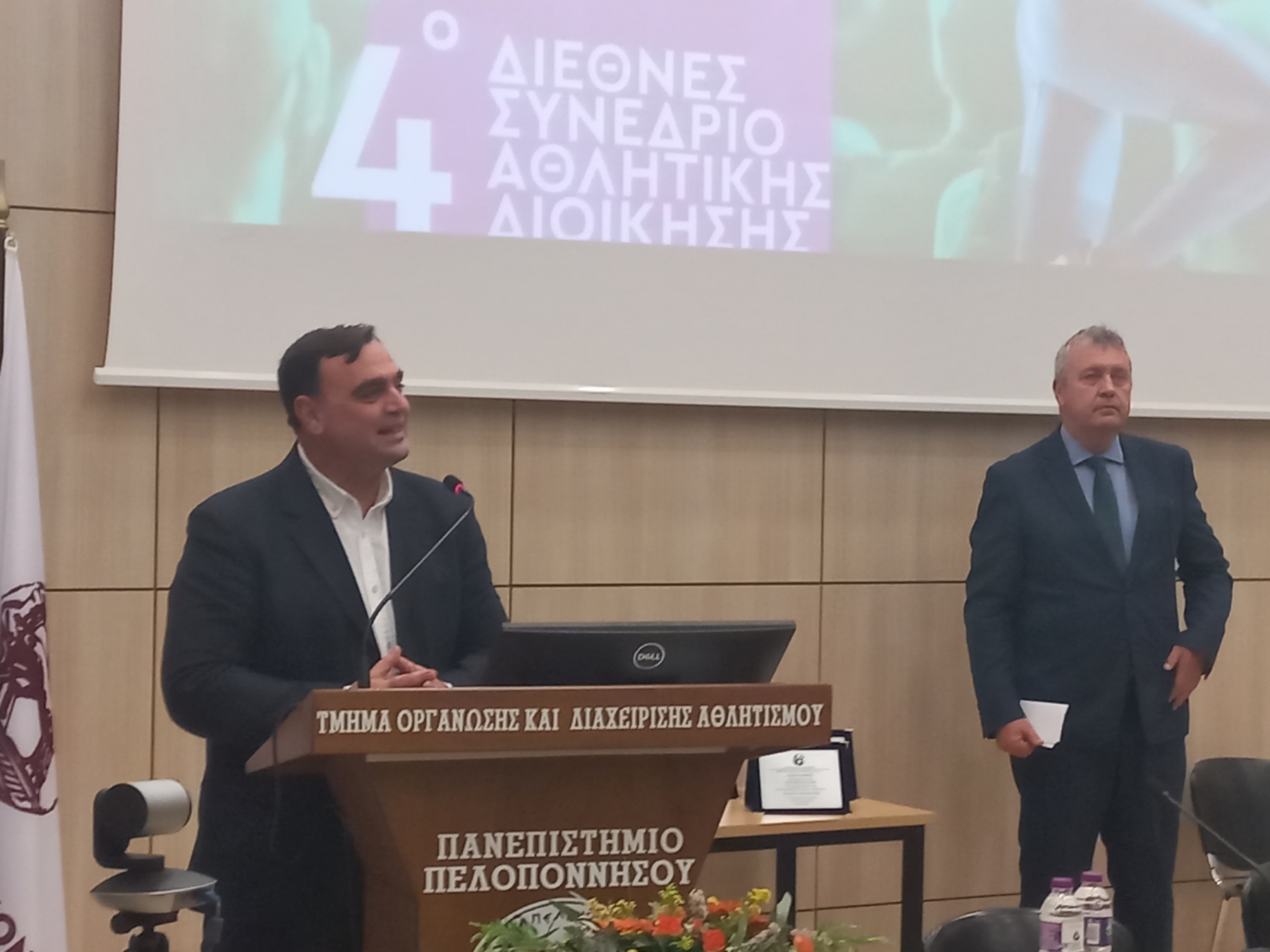 Από την πλευρά του, ο Αντιπεριφερειάρχης Λακωνίας Θεόδωρος Βερούτης, αφού μετέφερε τον χαιρετισμό του Περιφερειάρχη Πελοποννήσου Δημητρίου Πτωχού στο Συνέδριο, υπογράμμισε: « Η Σπάρτη βρίσκεται στο επίκεντρο μιας σημαντικής επιστημονικής συνάντησης, με θέμα τον ρόλο της αθλητικής διοίκησης σε έναν τομέα που μεταβάλλεται συνεχώς. Η συμβολή της επιστήμης και των επαγγελματιών του χώρου είναι καθοριστική για την ανάπτυξη ενός σύγχρονου, βιώσιμου και κοινωνικά ωφέλιμου αθλητικού περιβάλλοντος. Η Περιφέρεια Πελοποννήσου και η Περιφερειακή Ενότητα Λακωνίας, στηρίζουν τέτοιες πρωτοβουλίες που προβάλλουν τον τόπο μας και ενισχύουν τον ρόλο της Λακωνίας ως κόμβου επιστημονικής και αθλητικής δραστηριότητας.»
