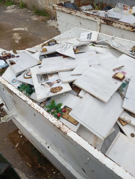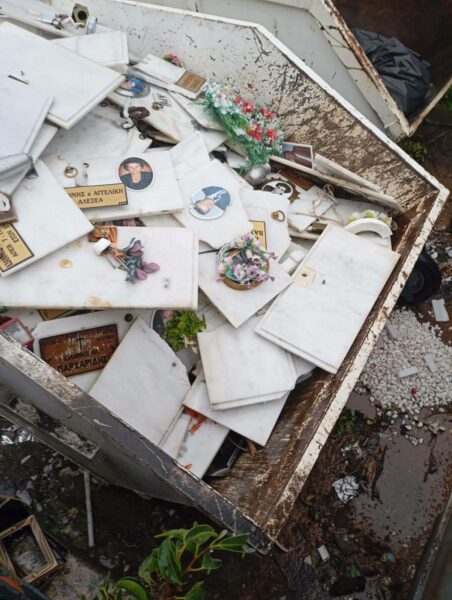 Η αναστάτωση δημιουργήθηκε όταν συγγενείς των θανόντων διαπίστωσαν ότι οι φωτογραφίες και τα αφιερώματα που είχαν τοποθετηθεί στις θυρίδες στα οστεοφυλάκια, είχαν αφαιρεθεί και βρίσκονταν άλλα διάσπαρτα στο έδαφος κι άλλα είχαν απορριφθεί.