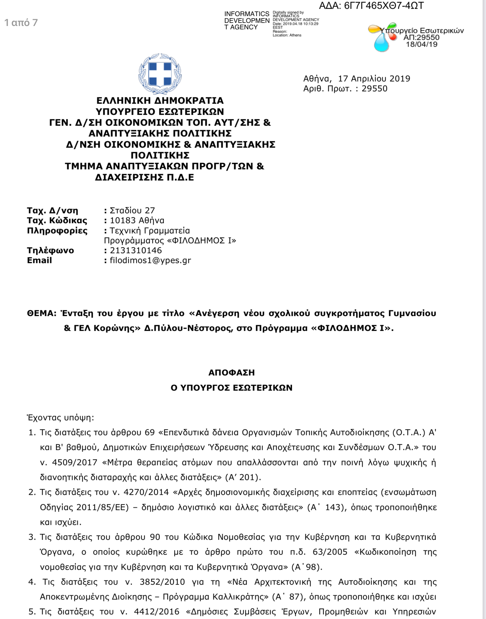 Επειδή λοιπόν η ιστορία γράφετε με πράξεις και όχι με λόγια, σας κοινοποιώ τι κάναμε ως Δημοτική Αρχή ώστε να μπορεί να ανεγερθεί το νέο σχολείο Κορωνης .