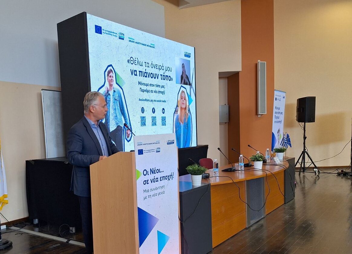 Στο γεμάτο από νέους αμφιθέατρο του Πανεπιστημίου Πελοποννήσου στην Τρίπολη, πραγματοποιήθηκε στις 23 Οκτωβρίου 2024 η εκδήλωση με τίτλο «Οι Νέοι σε μία Νέα Εποχή!», στο πλαίσιο του Προγράμματος Δίκαιης Αναπτυξιακής Μετάβασης. Η εκδήλωση διοργανώθηκε από την Ειδική Υπηρεσία Δίκαιης Αναπτυξιακής Μετάβασης (ΕΥΔΑΜ), με την υποστήριξη του Πανεπιστημίου Πελοποννήσου, του Green Tank και του Συνδέσμου Υποτρόφων του Ιδρύματος Ωνάση.