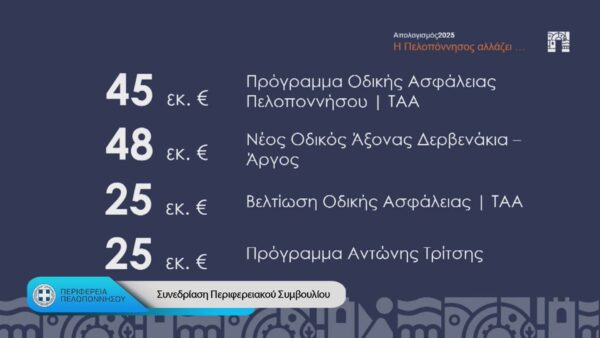 Ο Περιφερειάρχης τόνισε ότι τα έτη 2024 και 2025 αποτελούν χρονιές – ρεκόρ για την Περιφέρεια σε πληρωμές και απορροφήσεις, με περισσότερα από 200 εκατομμύρια ευρώ να έχουν διοχετευθεί στην τοπική οικονομία. Όπως χαρακτηριστικά ανέφερε, «μέσα από τα έργα και τα προγράμματα διοχετεύονται καθημερινά περίπου 520.000 ευρώ στην οικονομία της Πελοποννήσου».