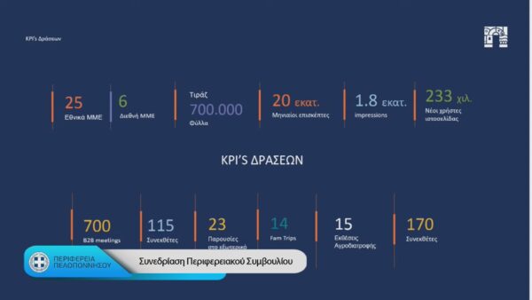 «Συνεχίζουμε να προσπαθούμε για να μετατρέψουμε την Πελοπόννησο σε έναν τόπο που θα έλκει. Όχι μόνο επισκέπτες, αλλά ανθρώπους που θα θέλουν να ζήσουν, να δημιουργήσουν και να ονειρευτούν τη ζωή τους εδώ», σημείωσε χαρακτηριστικά.