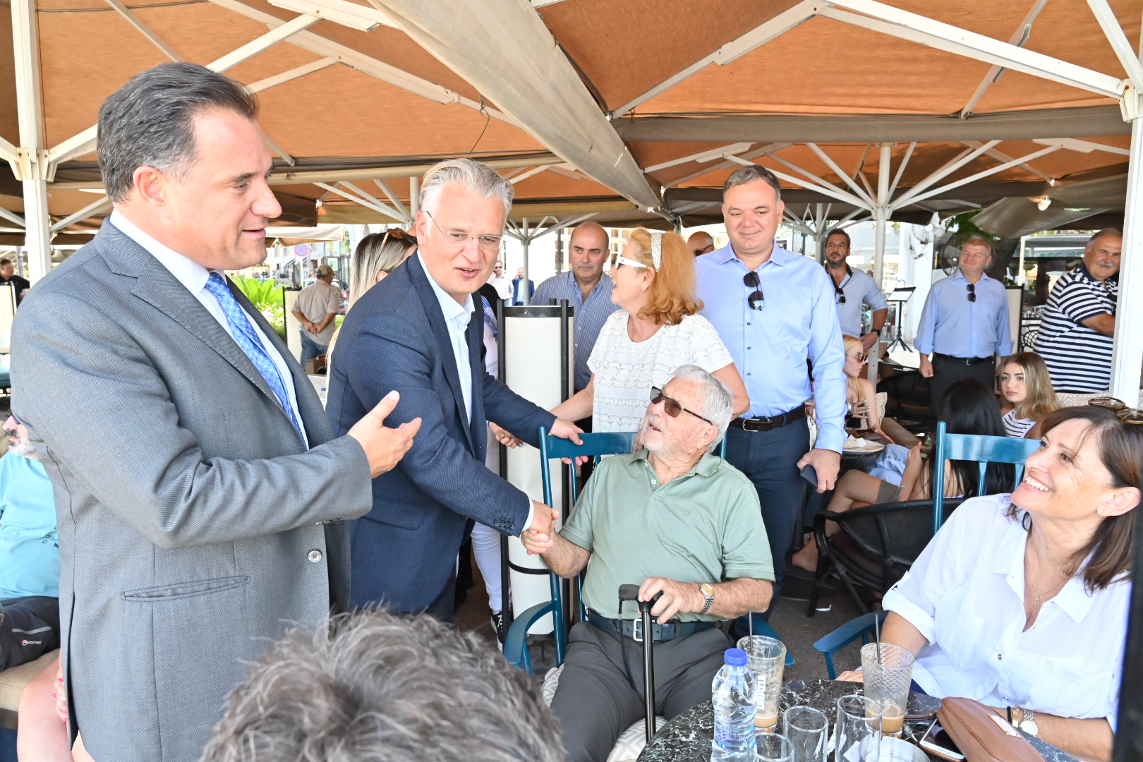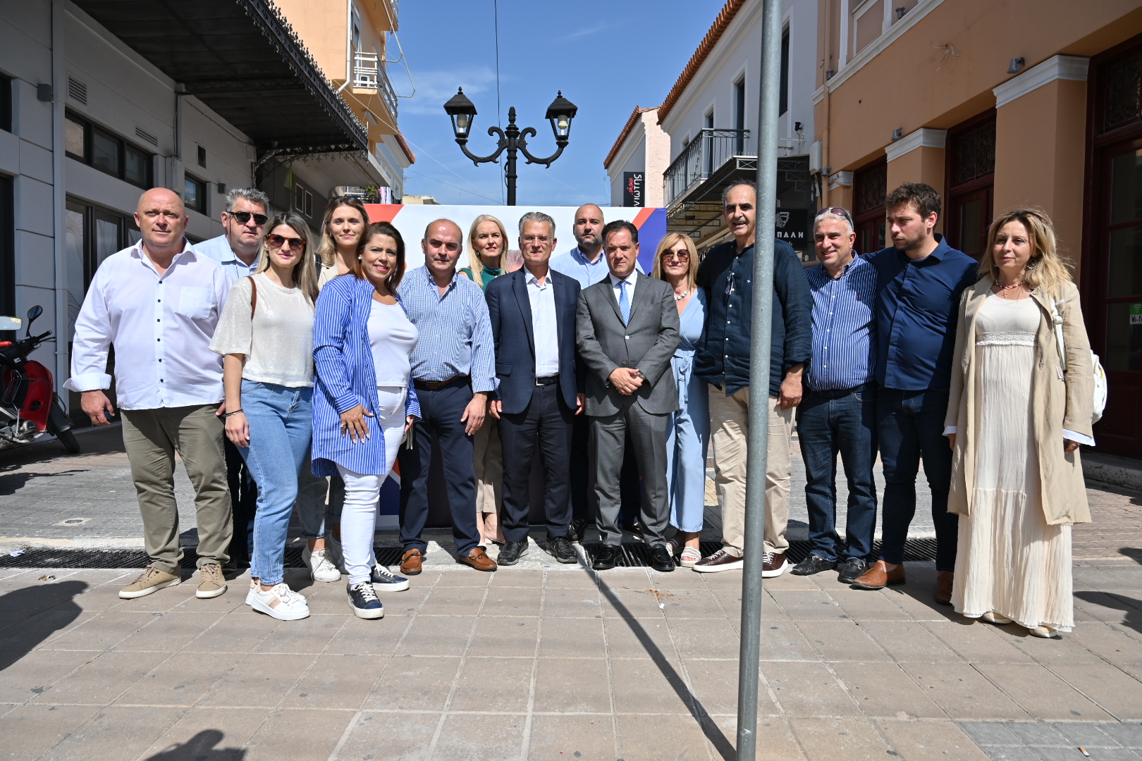 Ο Άδωνις Γεωργιάδης δήλωσε τη στήριξή του στην υποψηφιότητα του Δημήτρη Πτωχού και εξέφρασε «την πεποίθηση μου ότι εάν οι πολίτες της Πελοποννήσου τον επιλέξουν ως τον νέο Περιφερειάρχη, θα ζήσουν μία νέα λαμπρή περίοδο». Στη συνέχεια, αναφέρθηκε στη συνεργασία τους κατά την περίοδο της Κυβέρνησης Σαμαρά, «σε πολύ αντίξοες συνθήκες. Ήταν ένας άνθρωπος που ερχόταν τεχνοκρατικά και μας βοήθησε να κάνουμε τη δουλειά μας σωστά. Τι σημαίνει αυτό για εσάς στην Πελοπόννησο; Ότι είναι ένας άνθρωπος που ξέρει να αξιοποιεί τους ευρωπαϊκούς πόρους γρήγορα και να διεκδικεί περισσότερα. Κοινώς να μας παίρνουν τα λεφτά. Τα λεφτά που θα τα παίρνει όμως από εμάς, θα τα δίνει σε εσάς και θα κάνει τη δική σας τη ζωή καλύτερη».
