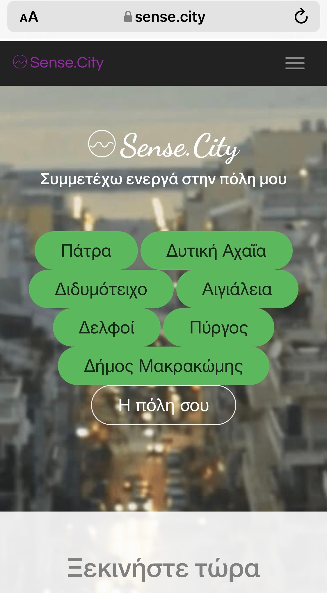 Η εφαρμογή sense.city που δημιούργησε επιστημονική ομάδα του Παν/μίου Πατρών εφαρμόζεται με επιτυχία σε πολλούς δήμους μεταξύ των οποίων οι: Πατρέων, Αιγιαλείας, Δελφών, Διδυμότειχου κ.α.