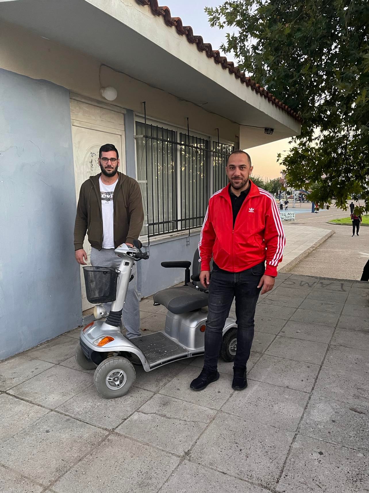 Το αναπηρικό αμαξίδιο που μέχρι πρότινος εξυπηρετούσε τις ανάγκες ενός συμπολίτη μας, δωρίστηκε από τις οικογένειες των Ιωάννη Παπαχριστόπουλου και Κώστα Κυριακόπουλου στο Γραφείο Εθελοντισμού του Δήμου Πύργου, που με τη σειρά του, το πρόσφερε στο Σωματείο παραπληγικών και κινητικά αναπήρων Ν. Ηλείας.