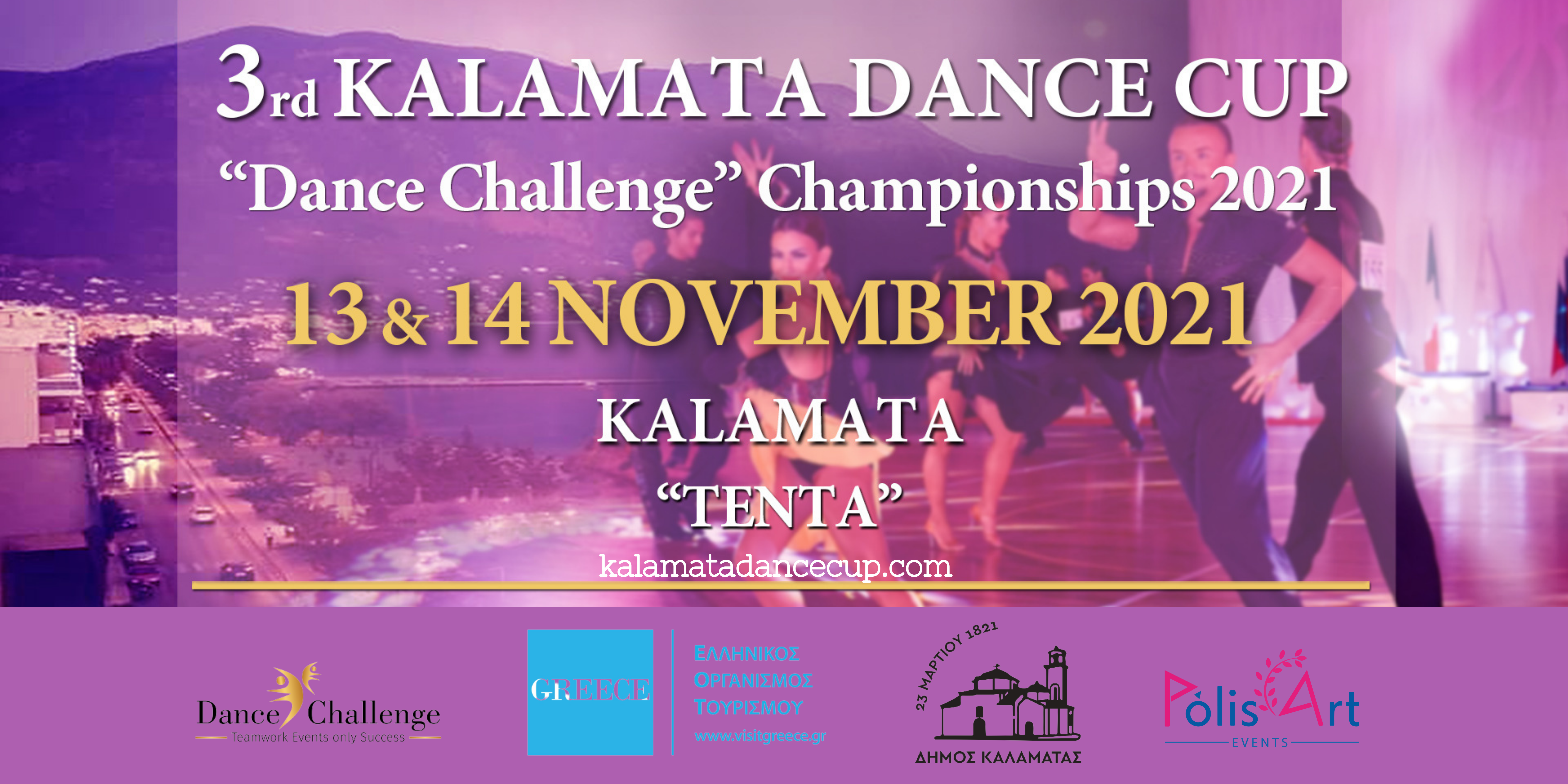 Μετά από δύο χρόνια πανδημίας και μακρόχρονης αποχής, το 3ο Διεθνές Φεστιβάλ Διαγωνισμού Χορού KALAMATA DANCE CUP – Beyond The Limits, θα διεξαχθεί στο Δημοτικό Γήπεδο της «Τέντας» στις 13 και 14 Νοεμβρίου 2021, για τη διεκδίκηση του Κυπέλλου Χορού Καλαμάτας με την ένταξη επίσης του παιδικού πρωταθλήματος ‘Dance Challenge Championships 2021’.