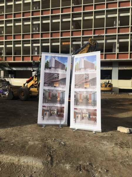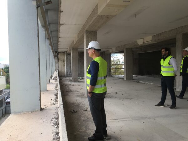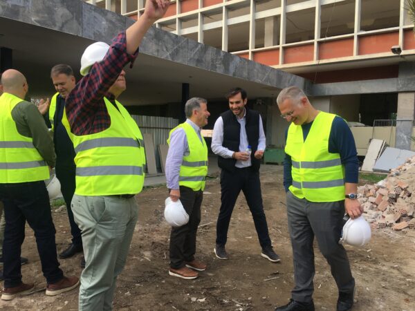 Μετά το τέλος αυτής, μιλώντας στα τοπικά ΜΜΕ ο Περιφερειάρχης αναφέρθηκε στην πορεία του έργου: «Υπάρχει μια έντονη επανεκκίνηση όλου του έργου, αφού πέρασε μια πολύ δύσκολη φάση με πολύ δύσκολες εργασίες, κυρίως για τη θεμελίωση. Νομίζω ότι σιγά-σιγά θα αποκτήσει ένα ρυθμό ώστε να μπορέσει να ολοκληρωθεί. Παράλληλα, έχουμε ολοκληρώσει τις συμπληρωματικές μελέτες οι οποίες χρειαζόντουσαν, όπως ξέρετε, πρόκυψε ένα μεγάλο θέμα με τη στατικότητα του κτηρίου, όλα έχουν ολοκληρωθεί. Οι εργασίες που μόλις είδατε αφορούν κυρίως την ενίσχυση του φορέα, οι οποίες θα συνεχιστούν για αρκετό καιρό. Και παράλληλα, ολοκληρώνουμε όλες τις υπόλοιπες ενέργειες που χρειάζονται, κυρίως για την αύξηση του προϋπολογισμού του έργου, κυρίως σε συνεργασία με το Υπουργείο Εσωτερικών, ώστε να μπορέσουμε να έχουμε ένα έργο άρτιο και λειτουργικό».