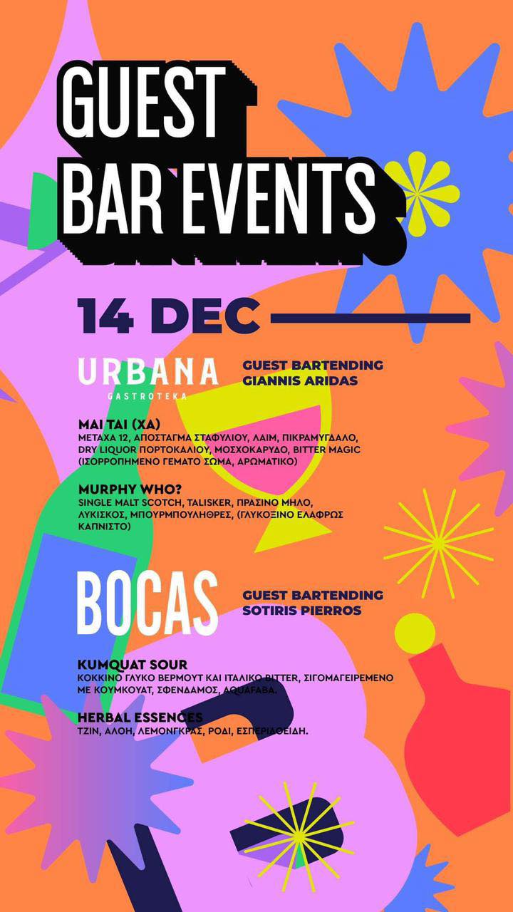 Αυτήν την Πέμπτη 14/12 υποδεχόμαστε δυο μπαρ από την Πελοπόννησο! Το Urbana Gastroteka από την μεγαλοπολη και το Bocas από την Πάτρα !