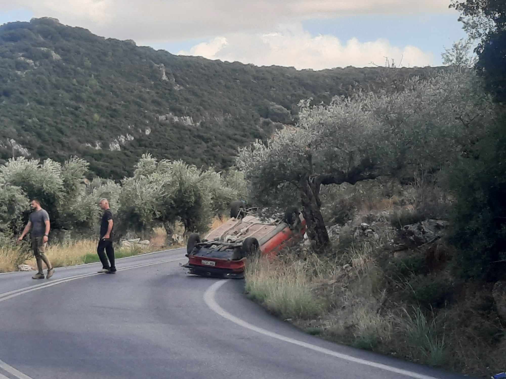 Σύμφωνα με τις πρώτες πληροφορίες το αυτοκίνητο ντεραπάρισε στο οδόστρωμα και ανετράπη, για αδιευκρίνιστους μέχρι στιγμής λόγους,