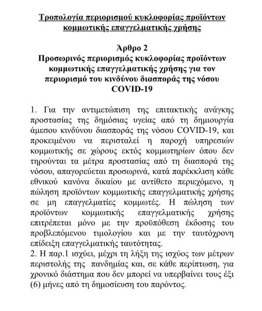 Με τροπολογία η κυβέρνηση περιορίζει προσωρινά την κυκλοφορία προϊόντων κομμωτικής επαγγελματικής χρήσης και η πώληση τους θα επιτρέπεται μόνο με την προϋπόθεση έκδοσης του προβλεπόμενου τιμολογίου και με την ταυτόχρονη επίδειξη επαγγελματικής ταυτότητας.