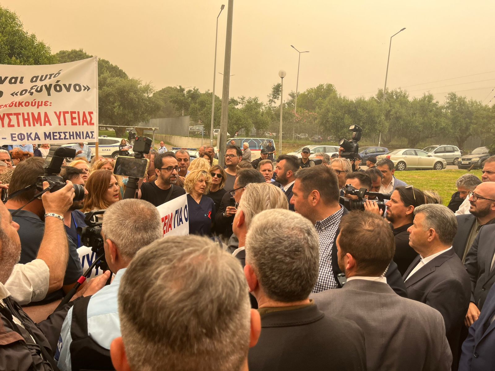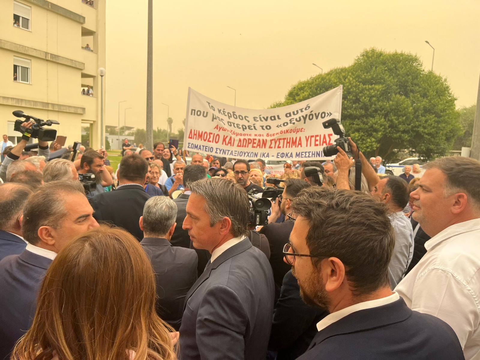 Με πανό και συνθήματα υποδέχθηκαν σήμερα τον Άδωνι Γεωργιάδη εκπρόσωποι συλλογικοτήτων στην είσοδο του νοσοκομείου της Καλαμάτας. Στα πάγια αιτήματα για δωρεάν υγεία και στις ανησυχίες τους που εκφράστηκαν για την υποστελέχωση του νοσοκομείου, ο υπουργός απήντησε με αριθμούς μιλώντας για όσα έχουν επιτευχθεί μέχρι σήμερα.