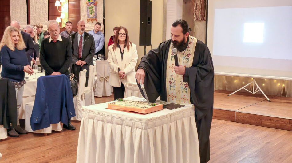 Την πίτα ευλόγησε εκ μέρους της Ιεράς Μητρόπολης Πατρών ο π. Νικόλαος Γκολφινόπουλος, ο οποίος ευχήθηκε καλή και ευλογημένη χρονιά σε όλους. Συγκινητική ήταν η αναφορά του στη χαρούμενη ατμόσφαιρα που διαπίστωσε ανάμεσα στους εργαζόμενους της ΔΕΠ, γεγονός που όπως τόνισε, συμβάλλει καθοριστικά στην επιτυχία του φορέα.
