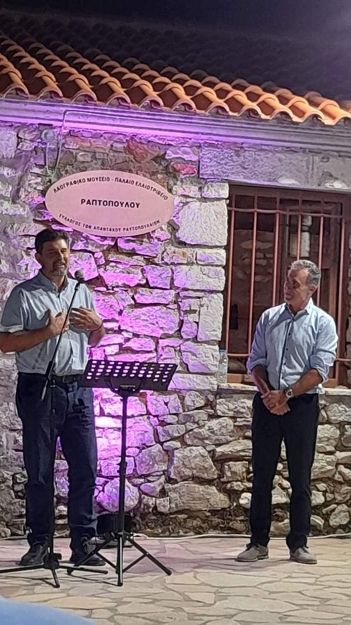 Mε μεγάλη επιτυχία πραγματοποιήθηκε την Τετάρτη το βράδυ η εκδήλωση «Οι Ορεινοί Τόποι της Ελιάς» στο παλαιό ελαιοτριβείο – Λαογραφικό Μουσείο Ραπτοπούλου. Η εκδήλωση αυτή αποτελεί πρωτοβουλία του Συλλόγου των Απανταχού Ραυτοπουλαίων και συνδιοργανώθηκε με την κοινωφελή επιχείρηση του Δήμου Τριφυλίας την οποία ευχαριστούμε πολύ. Η εκδήλωση ήταν αφιερωμένη στο ιερό δέντρο της ελιάς και τη ζωή που αναπτύχθηκε ανά τους αιώνες γύρω απ’ αυτό. Η παρουσία λοιπόν της ελιάς σημάδεψε και το δικό μας ορεινό τόπο. Πρόσφερε και προσφέρει ευημερία στον τόπο μας και μία καλύτερη ποιότητα ζωής στους κάτοικους της ευρύτερης ορεινής περιοχής μας. Η καλλιέργεια της ήταν και είναι ορόσημο. Το λάδι μας είναι ποιοτικό και με ευεργετικές ιδιότητες.