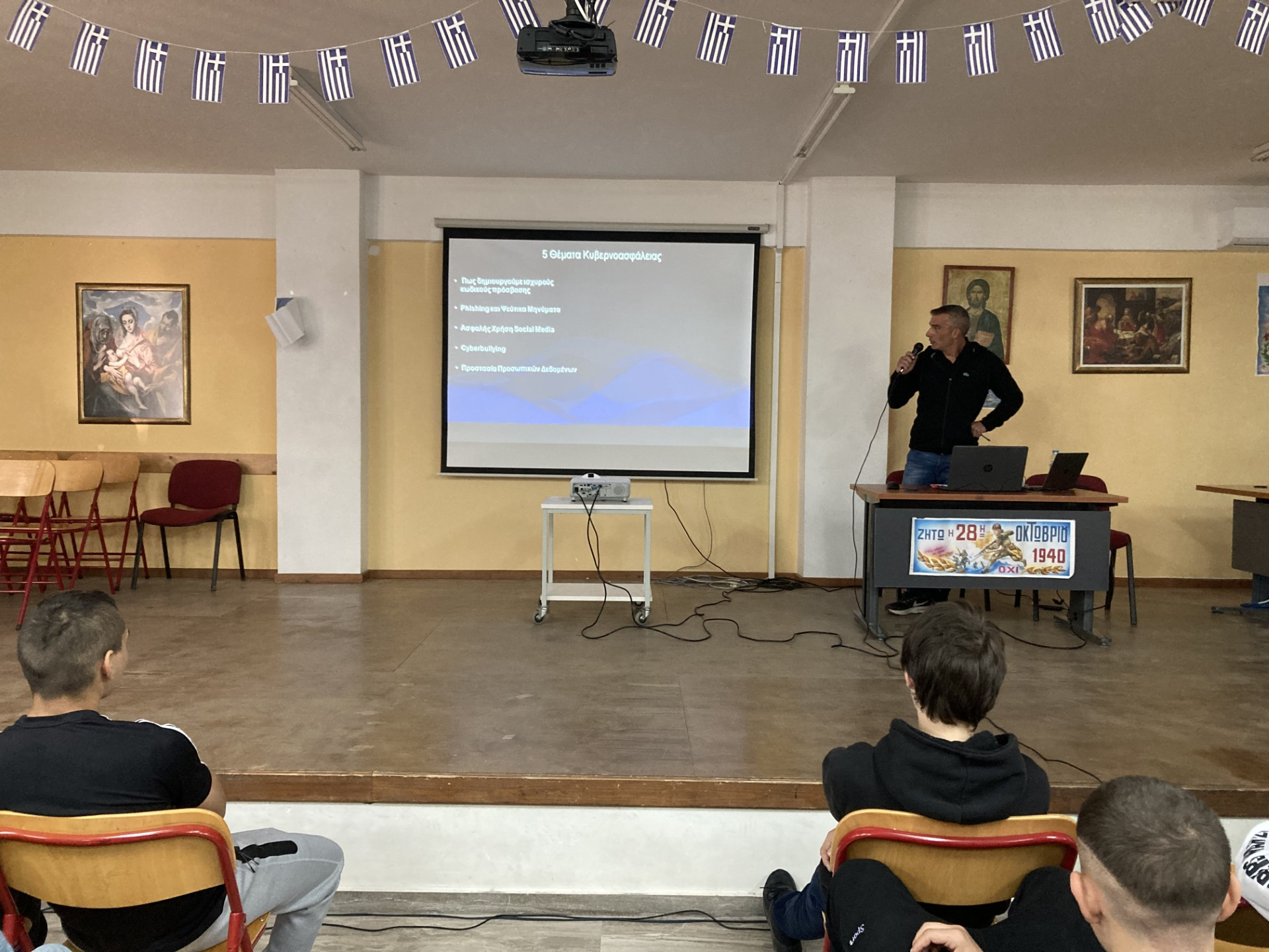 Στο πλαίσιο του Ευρωπαϊκού Μήνα Κυβερνοασφάλειας, το 1ο Γυμνάσιο Καλαμάτας διοργάνωσε μια διαδραστική και ενημερωτική εκδήλωση την Πέμπτη 24 Οκτωβρίου 2024, με καλεσμένο τον κύριο Μητσέα, ειδικό σε θέματα κυβερνοασφάλειας. Η εκδήλωση ήταν μέρος της εκστρατείας ευαισθητοποίησης που πραγματοποιείται κάθε Οκτώβριο σε ολόκληρη την Ευρώπη με στόχο την ενημέρωση του κοινού για τις διαδικτυακές απειλές και την προστασία προσωπικών δεδομένων.