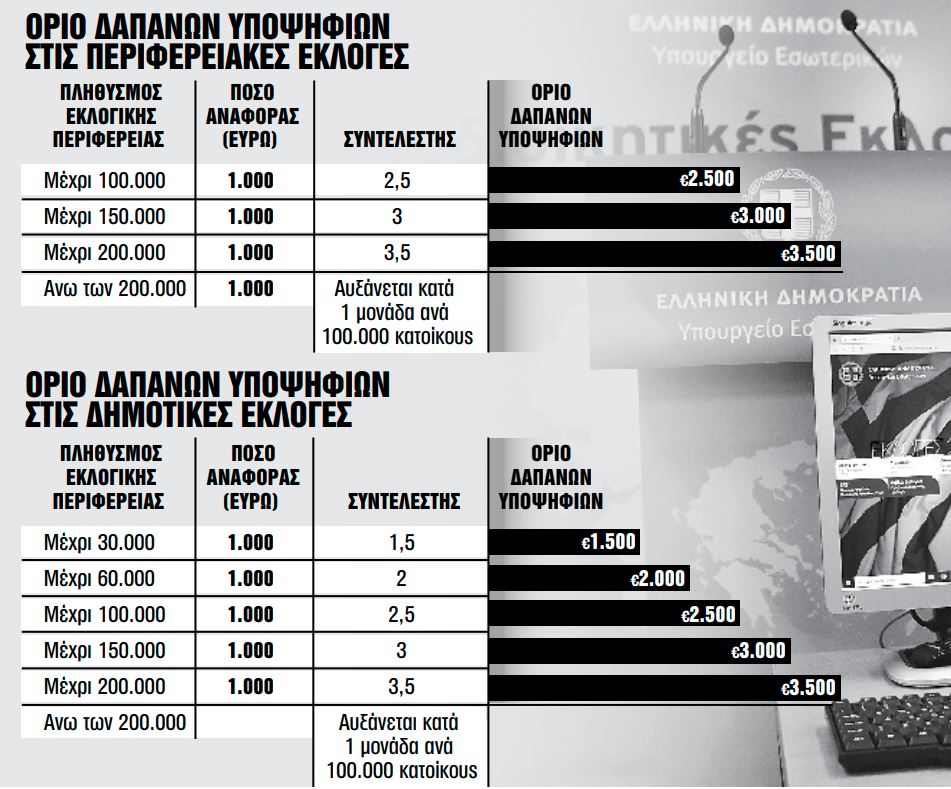 Το ίδιο ισχύει και για τις δαπάνες των συνδυασμών, σε ποσοστό 95%. Τα σχετικά ποσά αναρτώνται στη Διαφάνεια, μια πλατφόρμα υπό την ευθύνη της Singular Logic από κοινού με το αρμόδιο υπουργείο.