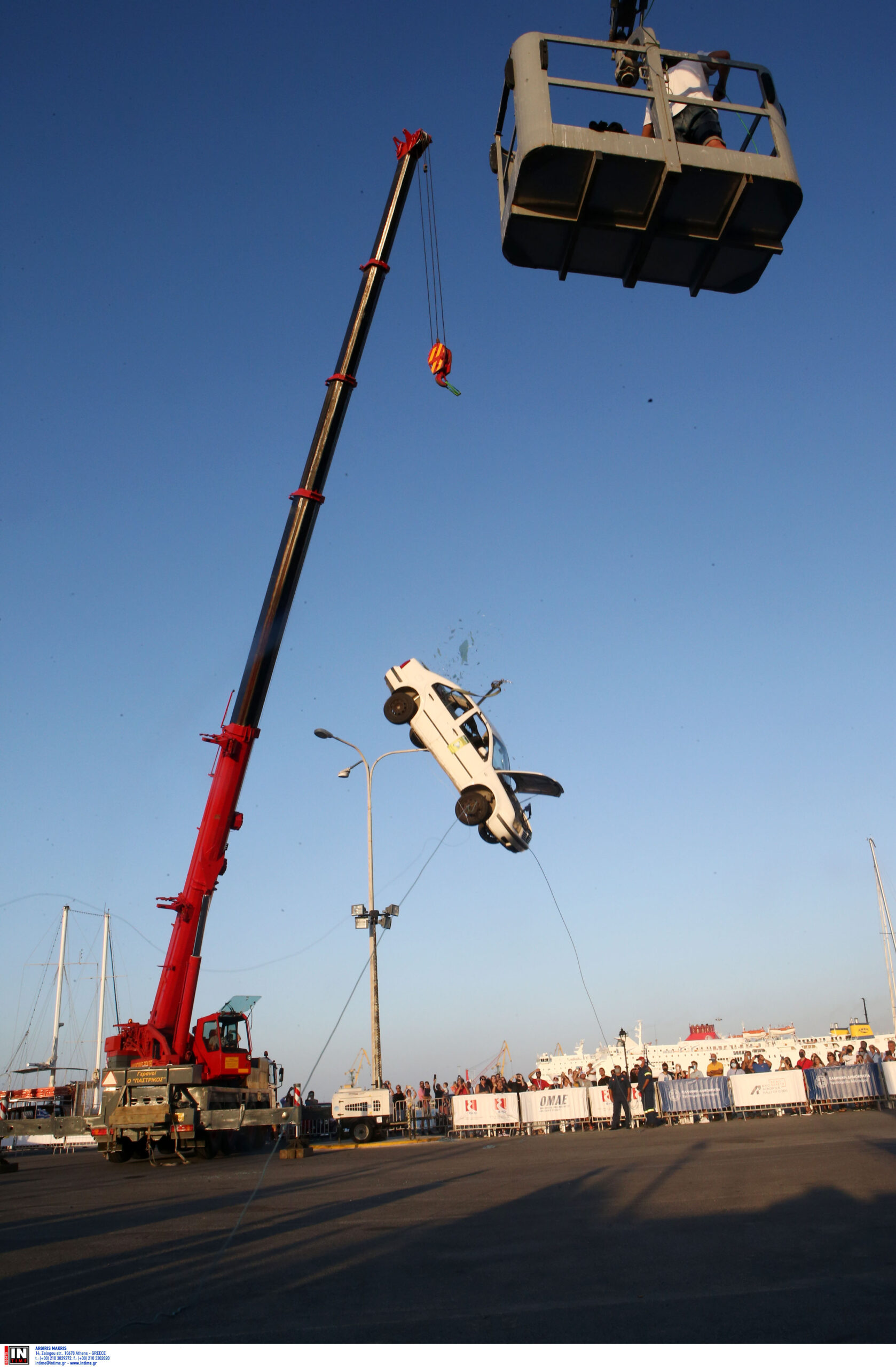 Με μια εντυπωσιακή προσομοίωση σύγκρουσης με 50 χλμ./ώρα και απεγκλωβισμού επιβατών ολοκληρώθηκε στο λιμάνι του Ηρακλείου η πρώτη δράση της σειράς εκδηλώσεων Οδικής Ασφάλειας, στο πλαίσιο του ΕΚΟ Ράλλυ Ακρόπολις.