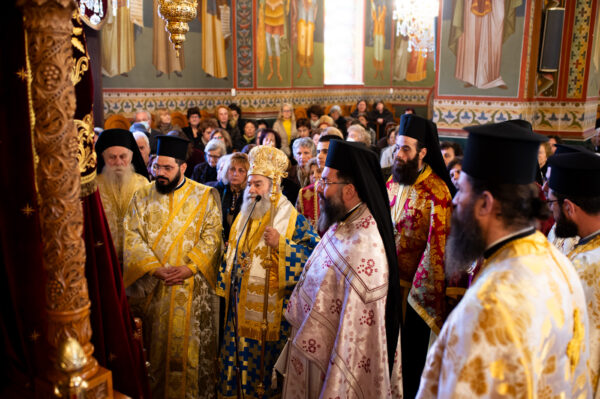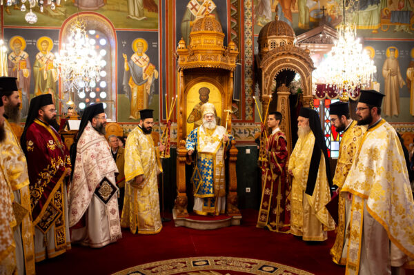 Στην ακολουθία του Όρθρου και στην Πανηγυρική Θεία Λειτουργία προέστη ο Σεβ. Μητροπολίτης Μάνης κ. Χρυσόστομος, προσκληθείς υπό του οικείου ποιμενάρχου Σεβ. Μητροπολίτου Μεσσηνίας κ. Χρυσοστόμου, ο οποίος παρέστη συμπροσευχόμενος από του Ιερού Βήματος και πλαισιωμένου υπό του Πρωτοσυγκέλλου της Ιεράς Μητροπόλεως Μεσσηνίας Αρχιμ. Φιλίππου Χαμαργιά, των Αρχιμ. Γεωργίου Μπίζα και Αλεξίου Αρώνη, των Πρωτοπρεσβυτέρων Ειρηναίου Πουλιανίτη και Αντωνίου Μανουσόπουλου, των εφημερίων του Ιερού Μητροπολιτικού Ναού της Υπαπαντής, Πρωτοπρεσβυτέρων Κρεσφόντου Πουλοπούλου και Σωτηρίου Τζαϊλέα και του Διακόνου Θεοφίλου Κυριάκου.