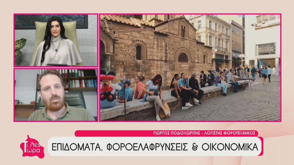 Ο Λογιστής Φοροτεχνικός Γιώργος Ποδοχωρίτης καλεσμένος στην εκπομπή «Τι Λες Τώρα» με την Αναστασία Μάντζαρη , μίλησε για τη χορήγηση των τρέχοντων επιδομάτων και για την επιστροφή ενοικίου. Τοποθετήθηκε εκτενώς στις νέες φοροελαφρύνσεις που θα έρθουν τον Ιανουάριο 2026, εξηγώντας ποιοι πολίτες θα ωφεληθούν από τη νέα φορολογική κλίμακα.