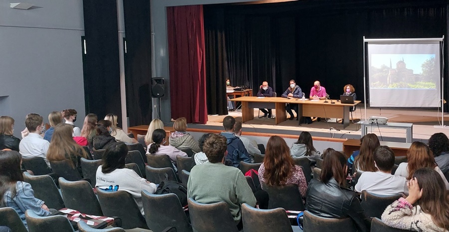Μαθητές γυμνασίων από την Ισπανία, την Πολωνία, τη Λιθουανία και την Πορτογαλία οι οποίοι συμμετέχουν στο πρόγραμμα Erasmus+ που υλοποιεί το 2ο Γυμνάσιο Μεσσήνης, είχαν την Παρασκευή 19 Νοεμβρίου συνάντηση με τον Δήμαρχο Μεσσήνης Γιώργο Αθανασόπουλο στο χώρο του Φιλοσοφικού Κέντρου Μεσσήνης.