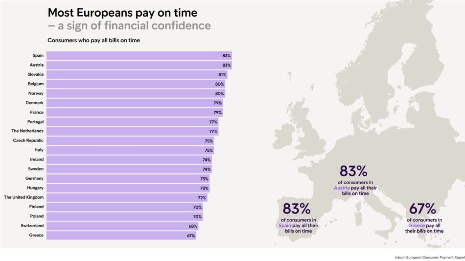H Eλλάδα είναι τελευταία στην Ευρώπη στα ποσοστά έγκαιρης πληρωμής λογαριασμών / πηγή: Ιntrum European Consumer Payment Report