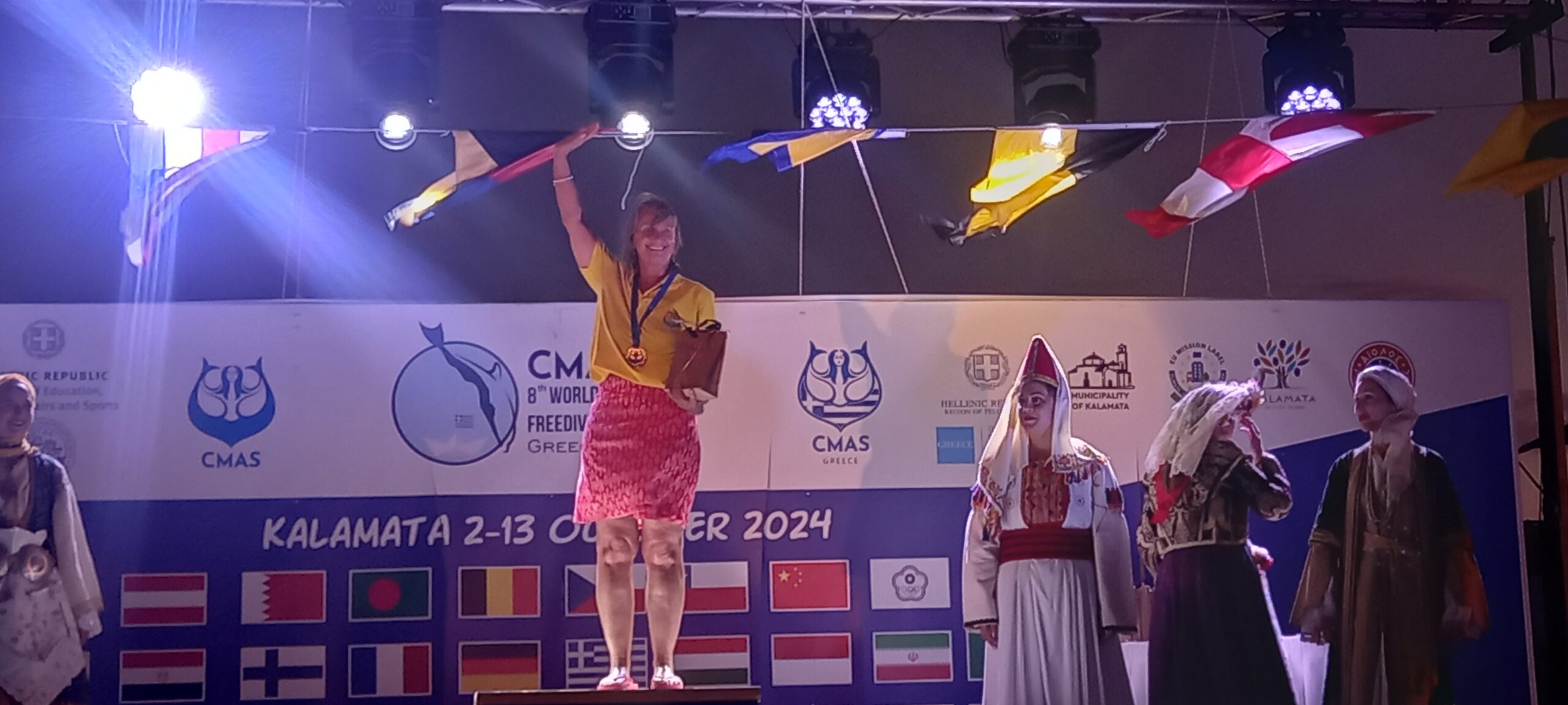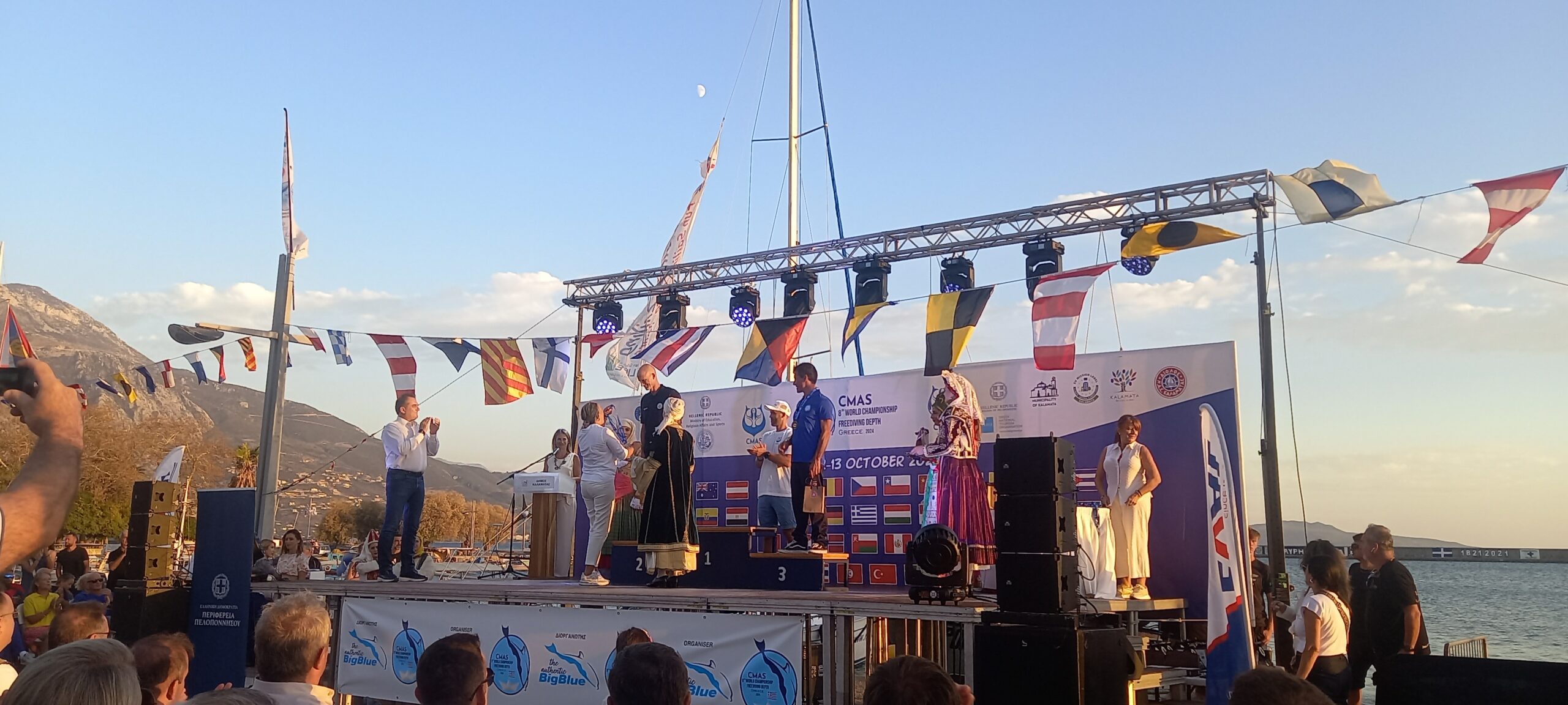 Αυλαία έριξε σήμερα στην προκυμαία της Καλαμάτας το 8ο Παγκόσμιο Πρωτάθλημα Καταδύσεων που πραγματοποιήθηκε για πρώτη φορά στην Καλαμάτα, ανοιχτά της παραλίας της Βέργας και της Μικρής Μαντίνειας, όπου στο βαθύ γαλάζιο του μεσσηνιακού κόλπου βυθίστηκαν οι καλύτεροι του κόσμου στην ελεύθερη κατάδυση.