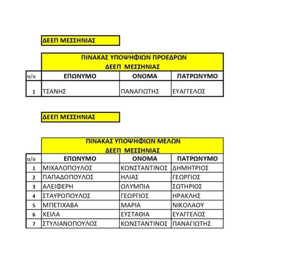 Όπως αναφέρεται στη σχετική ανακοίνωση: “Ο πρόεδρος της ΕΦΕΕΠ ΜΕΣΣΗΝΙΑΣ κ.Ιωάννης Κατσίρης ανακοινώνει ότι κατά τις επικείμενες εκλογές στις 23Νοε.2025 για την ανάδειξη Προεδρείων των Τοπικών και Περιφερειακών Οργανώσεων & Συνέδρων, στην Εκλογική Περιφέρεια Μεσσηνίας όλες και όλοι οι υποψήφιοι όλων των αξιωμάτων ΑΝΑΚΗΡΥΣΣΟΝΤΑΙ ως εκλεγείσες/εκλεγέντες, σύμφωνα με την παράγραφο 2 του άρθρου 6 της Βασικής Εγκυκλίου.”