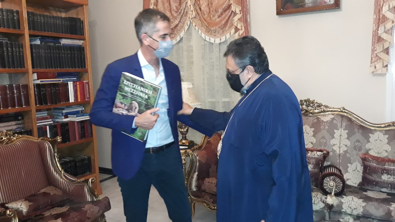 Τέλος, ευχαρίστησε τον κ. Μπακογιάννη για την επίσκεψη και του προσέφερε το συλλεκτικό τόμο “Χριστιανική Μεσσηνία”, ενώ ο Δήμαρχος προσέφερε στο Μητροπολίτη Εικόνα του Αγίου Διονυσίου του Αρεοπαγίτου, Πολιούχου Αθηνών.