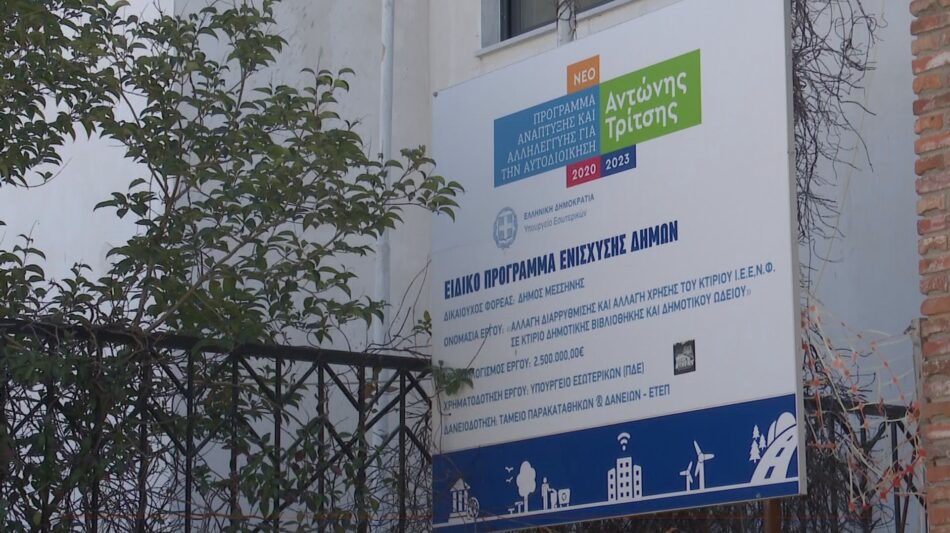 Οι εργασίες ανακατασκευής στο Φιλοσοφικό Κέντρο Μεσσήνης προχωρούν με ικανοποιητικούς ρυθμούς, ανοίγοντας τον δρόμο για τη δημιουργία ενός σύγχρονου πολιτιστικού πυρήνα.
