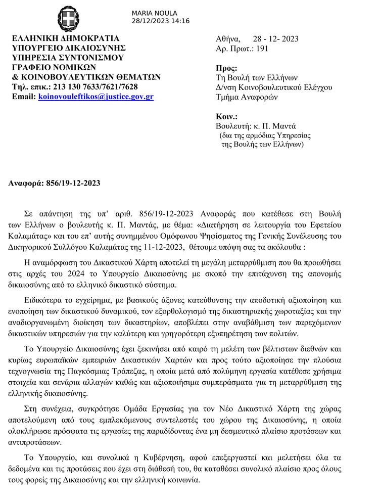 Ακολουθεί η πλήρης απάντηση του υπουργείου Δικαιοσύνης: