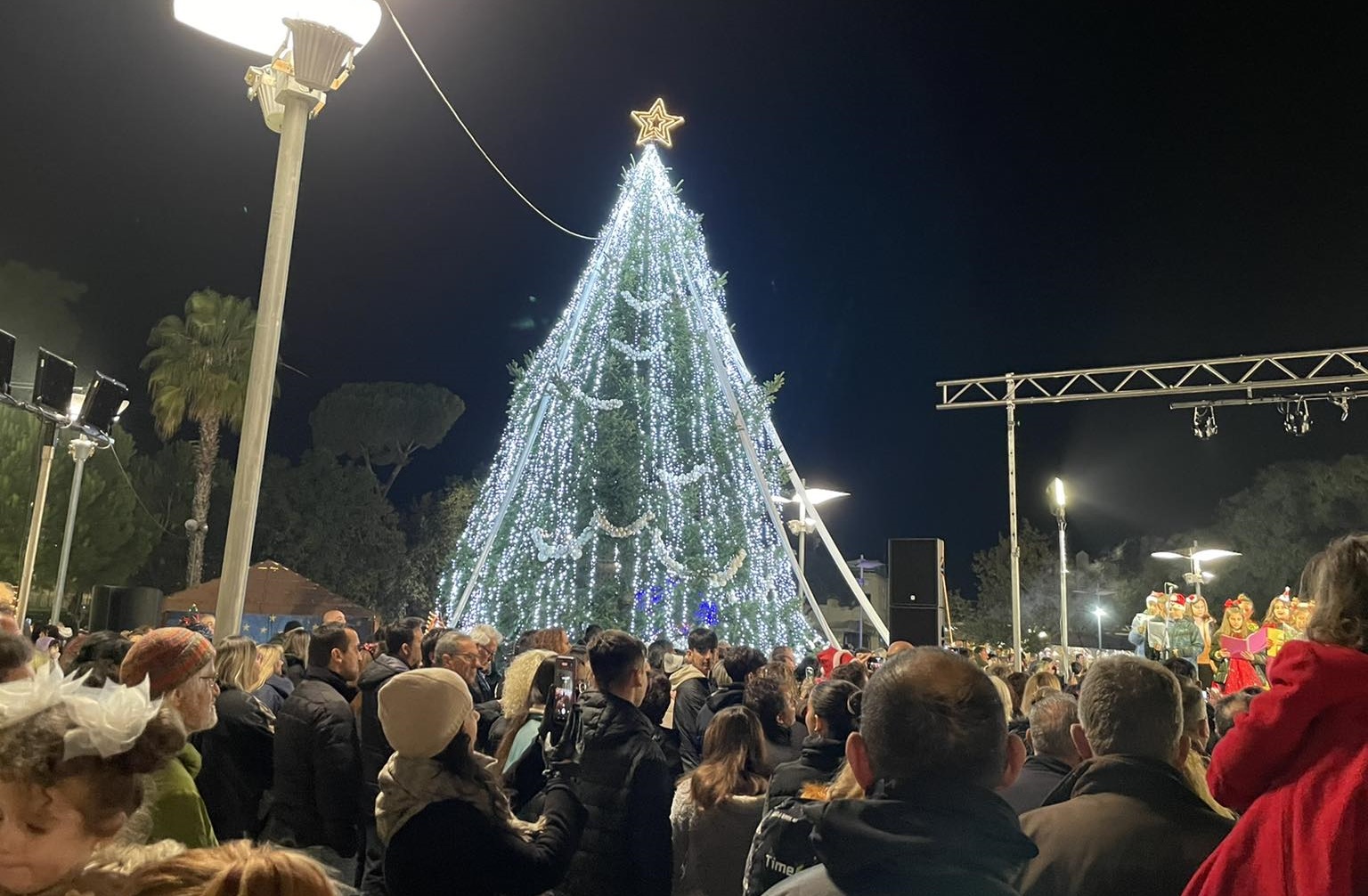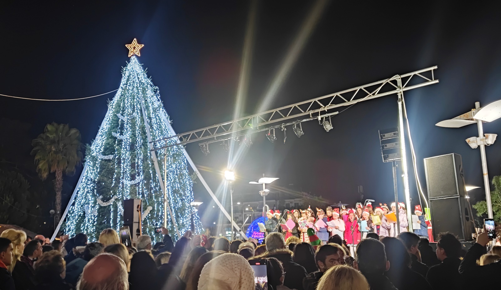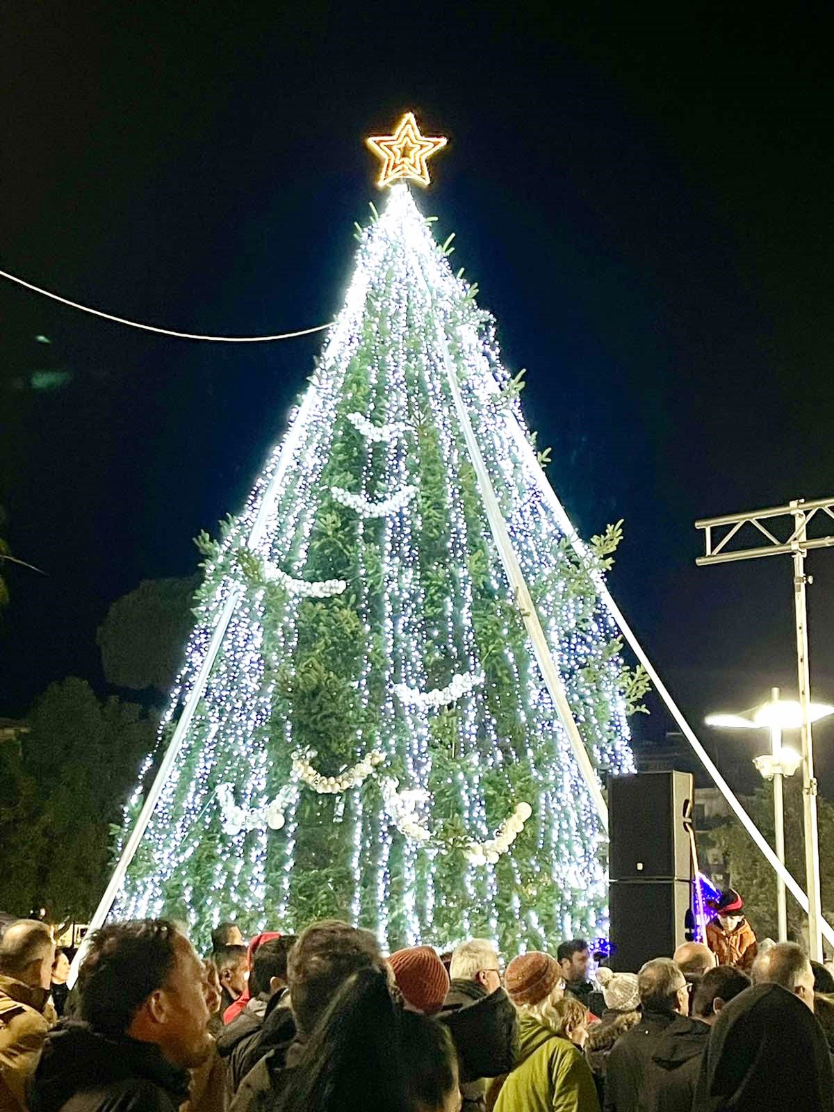 Με φώτα, στολίδια, μουσική και αρώματα Χριστουγέννων πλημμύρισε το Σάββατο το απόγευμα η κεντρική πλατεία Μεσσήνης κατά τη φωταγώγηση του χριστουγεννιάτικου δέντρου.