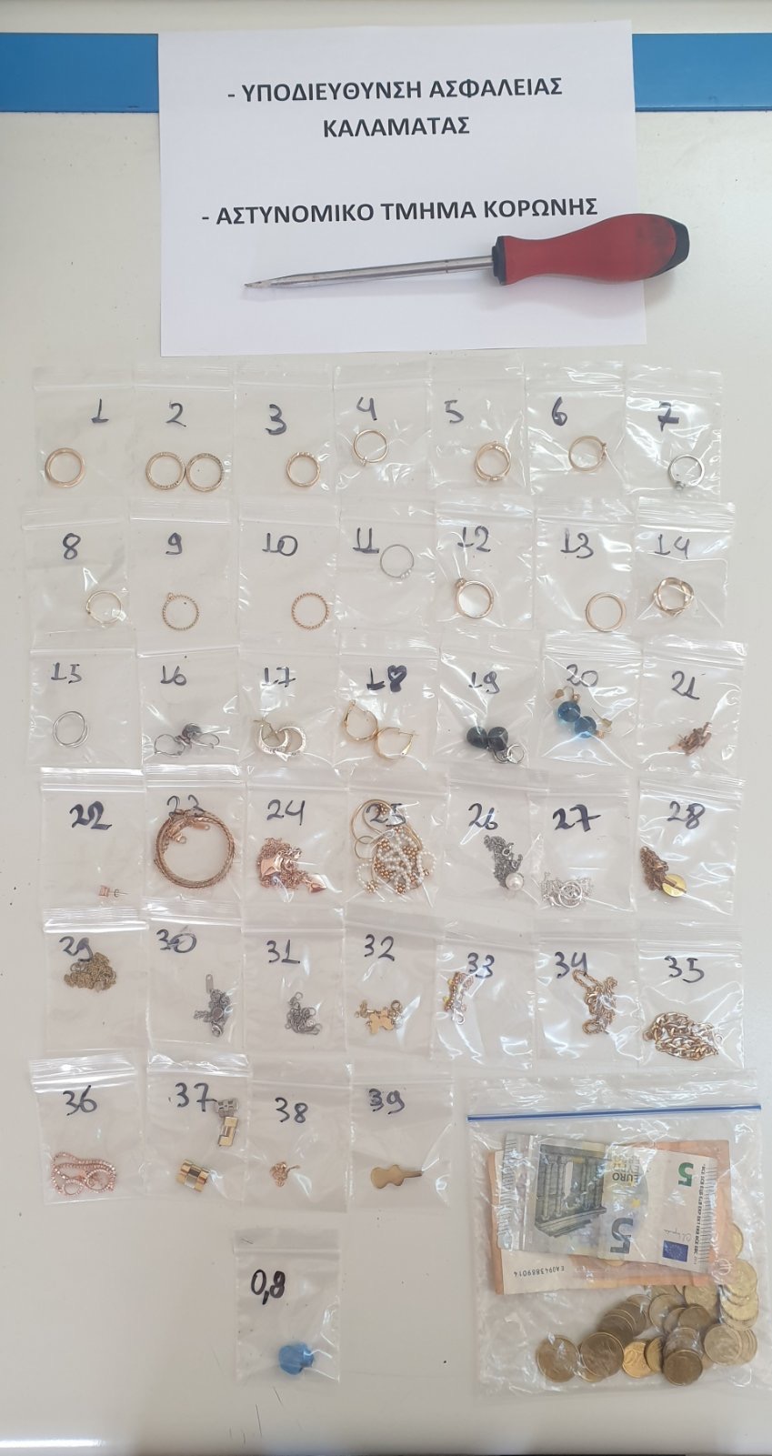 Επιπλέον, όπως προέκυψε από την προανάκριση, ο 39χρονος κατά το χρονικό διάστημα από 29.5.2023 έως και την 13.6.2023 είχε διαπράξει ακόμη -4- περιπτώσεις κλοπών σε οικίες, όπου είχε αφαιρέσει μεταξύ άλλων χρήματα, χρυσαφικά και κινητό τηλέφωνο. Μέρος των αφαιρεθέντων βρέθηκε στην κατοχή του και αποδόθηκε.