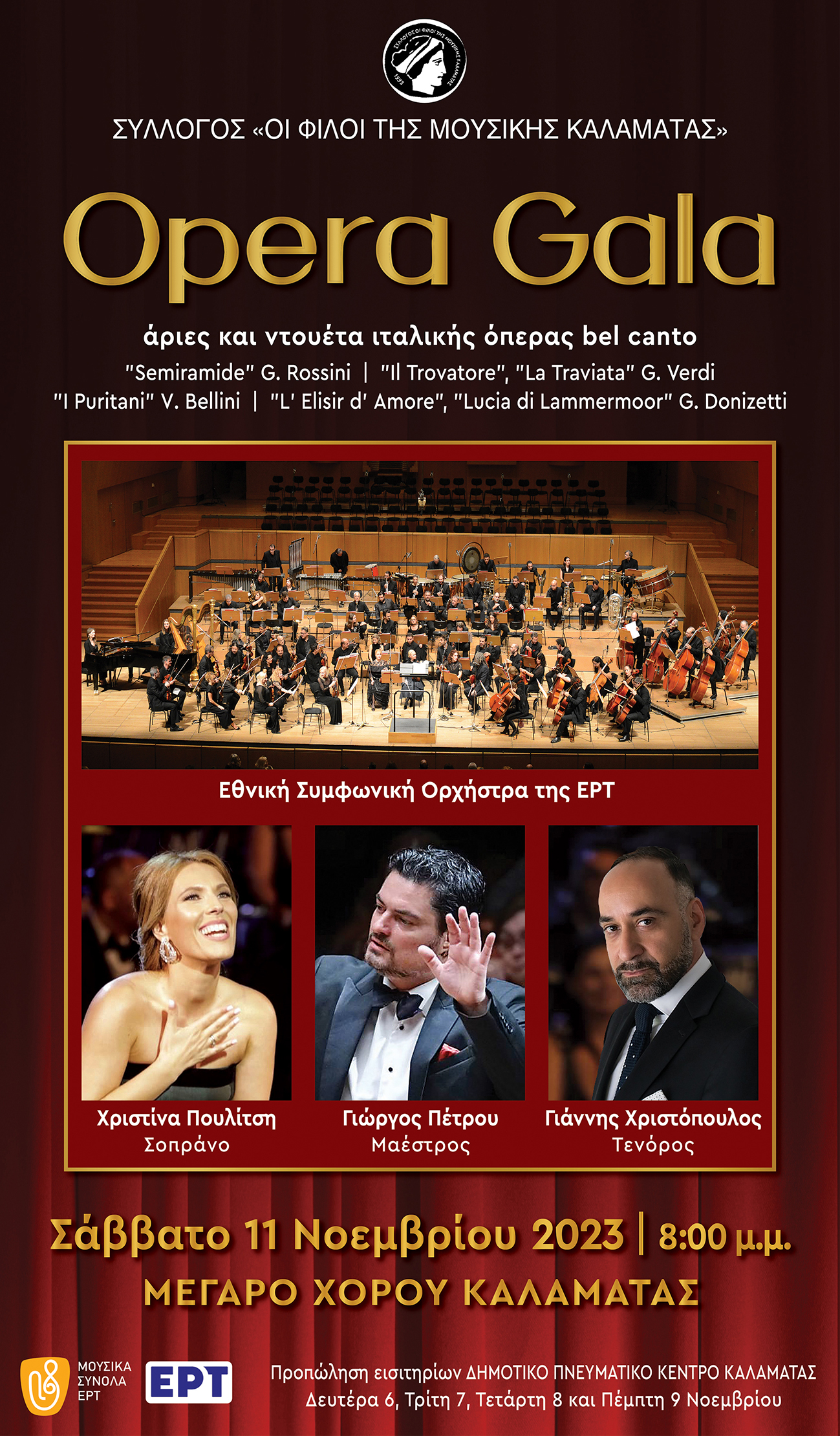 Μία μουσική σύμπραξη τριών διακεκριμένων μουσικών με λαμπρή σταδιοδρομία στο μουσικό στίβο, της σοπράνο Χριστίνας Πουλίτση, του τενόρου Γιάννη Χριστόπουλου, του μαέστρου Γιώργου Πέτρου και της εξαίρετης Εθνικής Συμφωνικής Ορχήστρας της ΕΡΤ.