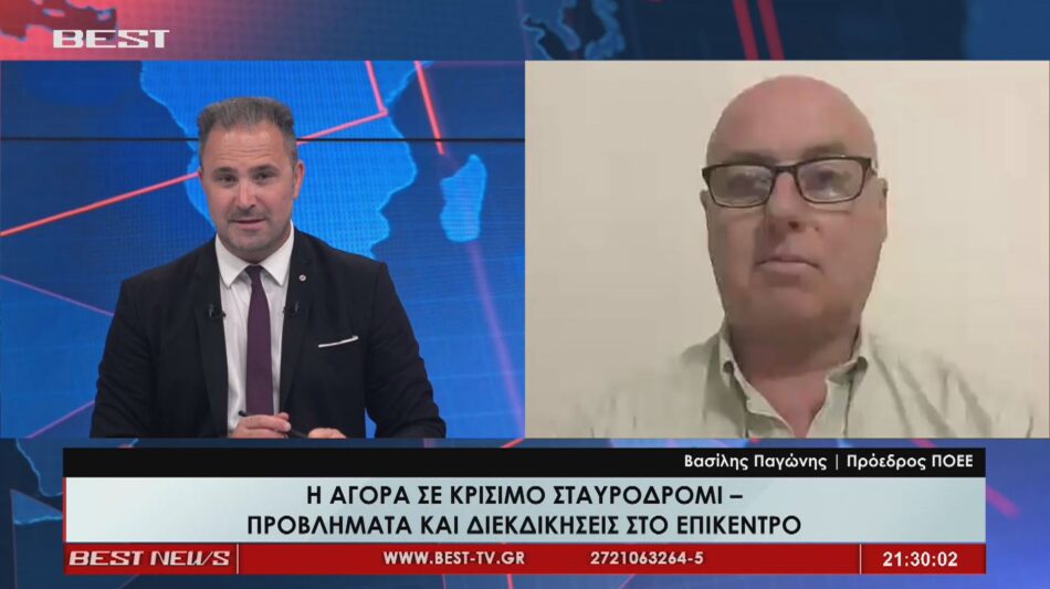 Χαρακτηριστικά τα όσα σημείωσε μιλώντας στο κεντρικό δελτίο ειδήσεων της τηλεόρασης BEST ο πρόεδρος της ΠΟΕΕ Βασίλης Παγώνης.