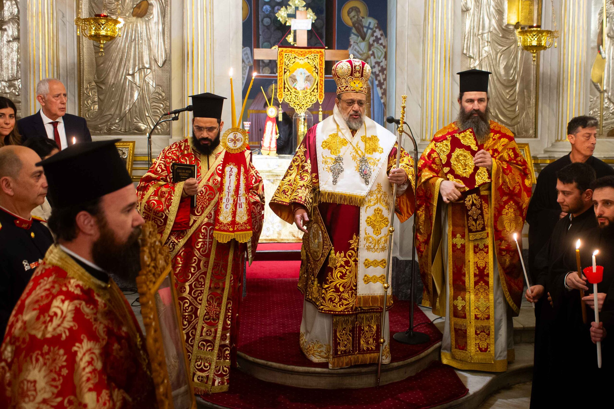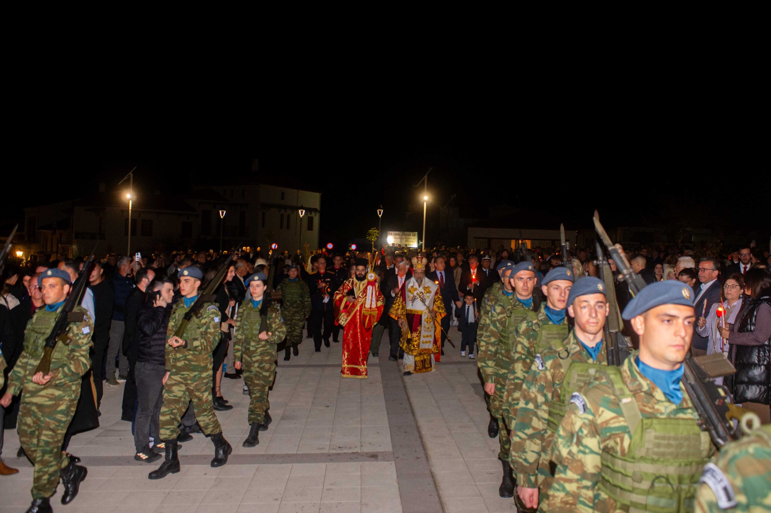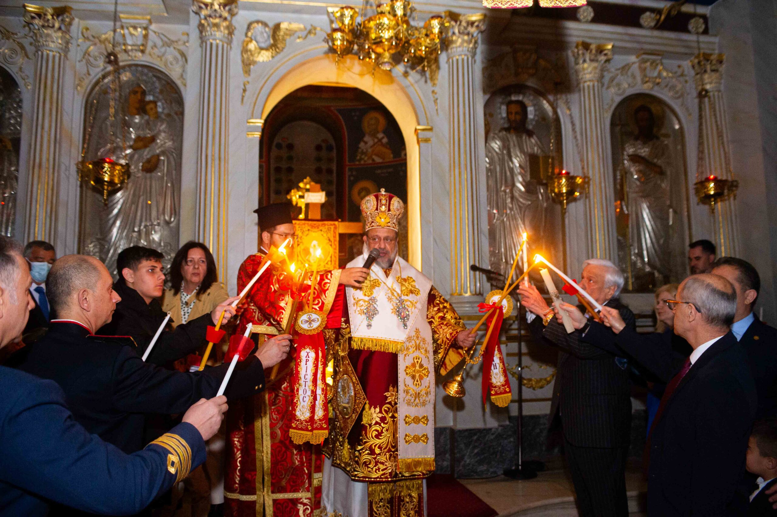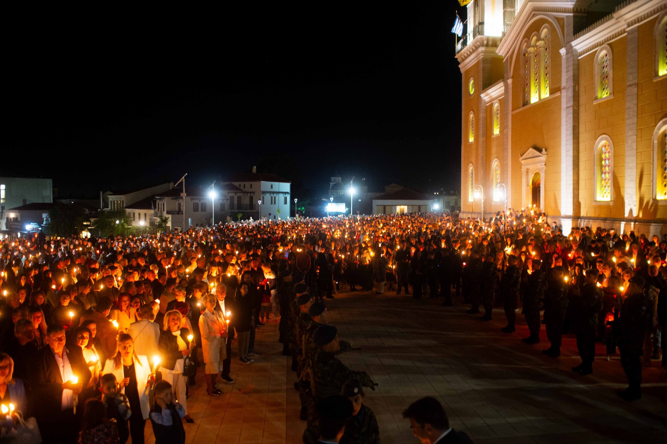 Αφού μετέδωσε το Άγιο Φως, προέστη της τελετής της Αναστάσεως στον αύλειο χώρο του Μητροπολιτικού Ναού, παρουσία εκπροσώπων Αρχών και Φορέων και πλήθους πιστών.