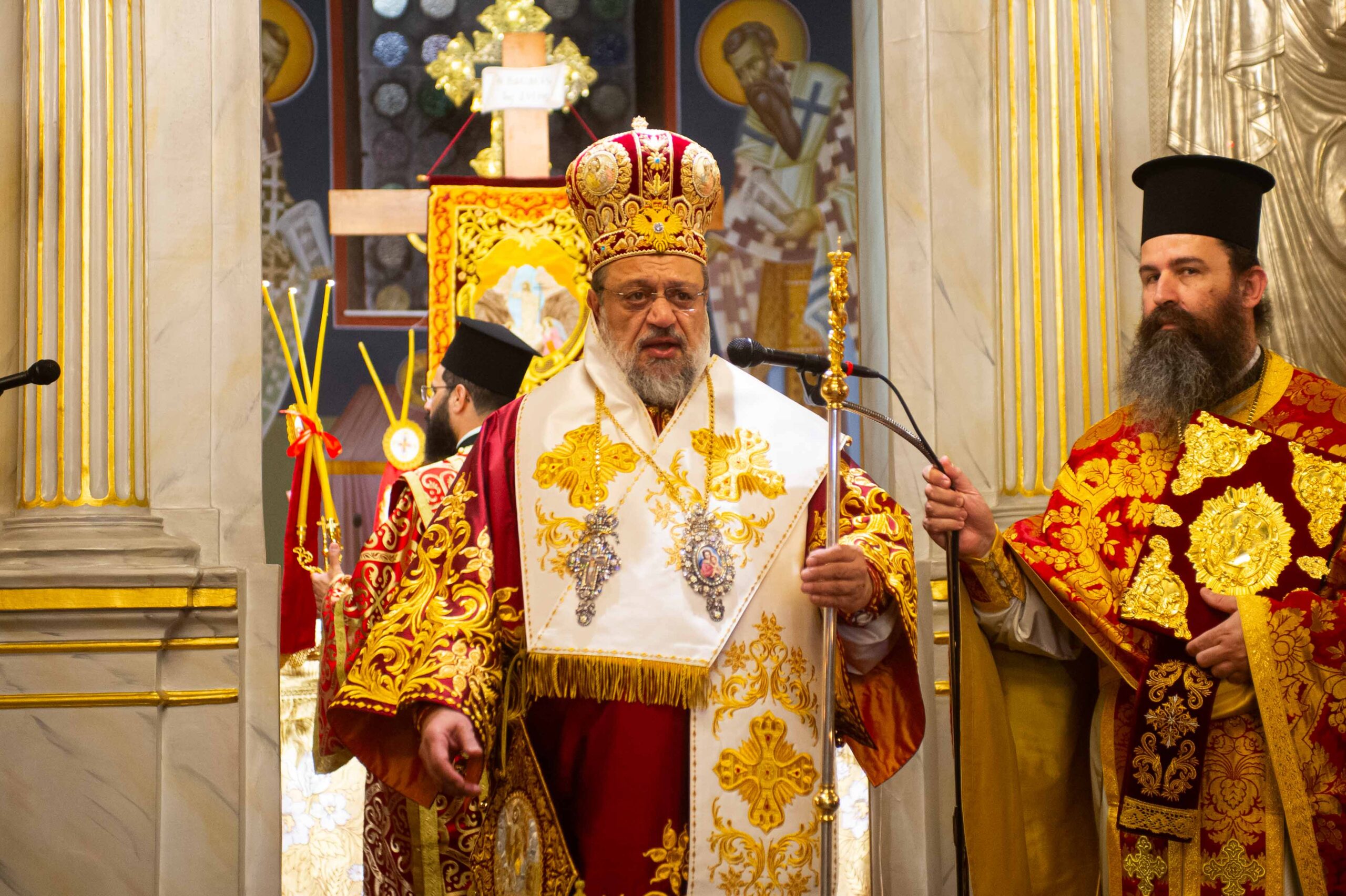 Ο Μητροπολίτης μετά την ανάγνωση του Ιερού Ευαγγελίου και υπό τους ήχους χαρμοσύνων κωδωνοκρουσιών, ανήγγειλε το «Χριστός Ανέστη». Απευθυνόμενος στους πιστούς ανέφερε ότι η Ανάσταση του Χριστού αποτελεί την έσχατη προσδοκία του ανθρώπου και τον τελικό του προορισμό, καθώς και την πρόγευση της αιώνιας βασιλείας του. Συνάμα ευχήθηκε υγεία και χρόνια πολλά προς όλους.