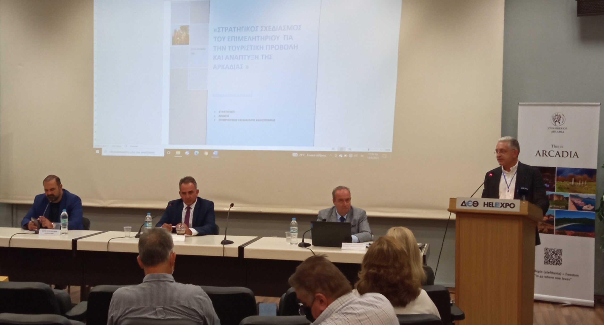 Ο πρόεδρος του Επιμελητηρίου Αρκαδίας κ. Γιάννης Τρουπής, στη διάρκεια του χαιρετισμού του, τόνισε ότι το Επιμελητήριο Αρκαδίας έχει θέσει ως στόχο τη διερεύνηση του τουριστικού προϊόντος της Αρκαδίας.