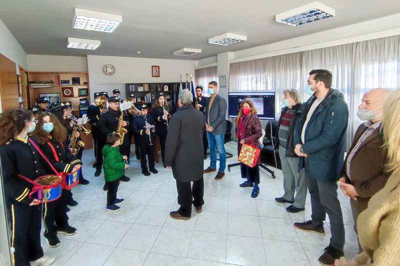 Στη συνέχεια μετέβησαν στο γραφείο του Δημάρχου, όπου συνέχισαν με χριστουγεννιάτικες μελωδίες. Ο Δήμαρχος ευχήθηκε στα μέλη της Φιλαρμονικής χρόνια πολλά για τις γιορτές των Χριστουγέννων, τονίζοντας ότι αποτελούν στολίδι για τον Δήμο και η παρουσία τους πρωταγωνιστεί σε κάθε εκδήλωση, για να προσθέσει στη συνέχεια ότι είναι πολύ ενθαρρυντικό το γεγονός ότι πολλά μικρά παιδιά εμπιστεύονται τη Δημοτική Φιλαρμονική για τη μουσική τους παιδεία.