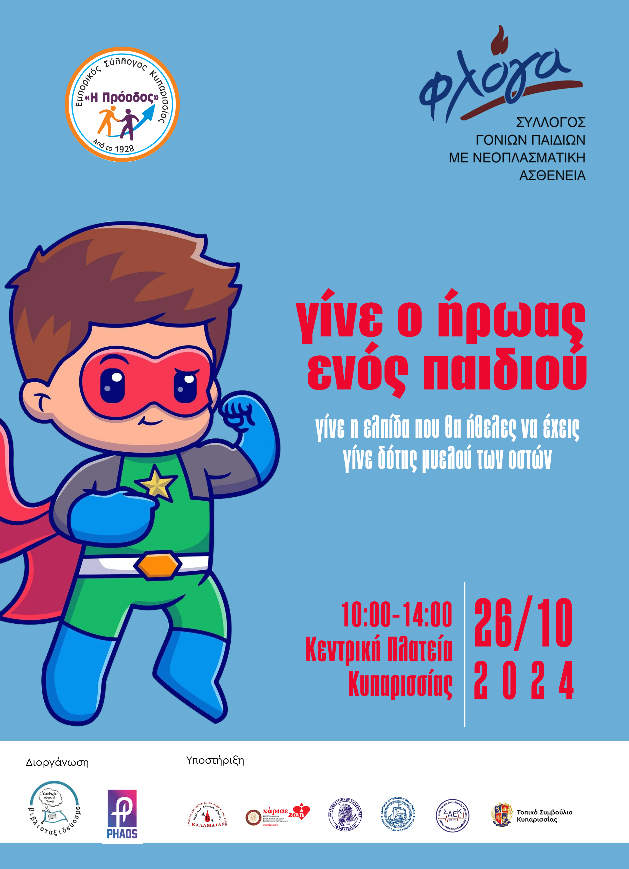 Η επιτυχημένη δράση “Γίνε ο Ήρωας Ενός Παιδιού”, που υλοποιείται τα τελευταία δύο χρόνια στην Καλαμάτα από το «Βιβλιοταξιδεύουμε» και τη «Φάος» Κοιν.Σ.Επ., έρχεται για πρώτη φορά στην Κυπαρισσία!