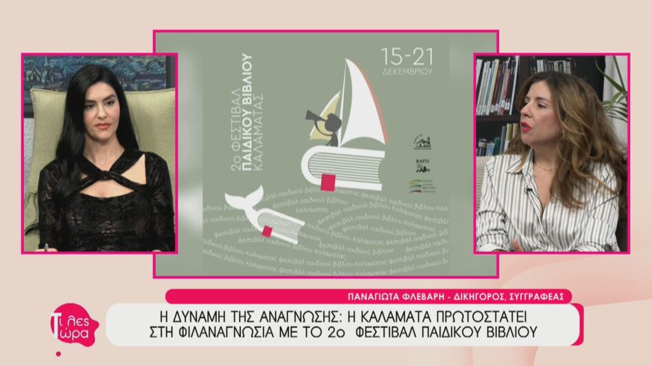 Με την επίσημη έναρξη του 2ου Φεστιβάλ Παιδικού Βιβλίου Καλαμάτας τη Δευτέρα 15 Δεκεμβρίου, η πόλη μας μπήκε σε ρυθμούς γιορτής και φιλαναγνωσίας. Με αυτή την αφορμή, είχαμε τη χαρά να φιλοξενήσουμε στην εκπομπή «Τι Λες Τώρα» με την Αναστασία Μάντζαρη την Καλαματιανή συγγραφέα και δικηγόρο, Παναγιώτα Φλεβάρη. Η κυρία Φλεβάρη μάς μίλησε για τη μεγάλη σημασία του εξωσχολικού βιβλίου και πώς η ανάγνωση αποτελεί εφόδιο για τα παιδιά. Ανέλυσε επίσης τις δικές της δράσεις στο πλαίσιο του Φεστιβάλ που θα διαρκέσει έως τις 21 Δεκεμβρίου, τονίζοντας παράλληλα τον κεντρικό και σπουδαίο ρόλο της Δημόσιας Κεντρικής Βιβλιοθήκης στην οργάνωση και στήριξη του θεσμού. Μία ενδιαφέρουσα συζήτηση για το βιβλίο, τη δημιουργία και την εκπαίδευση.