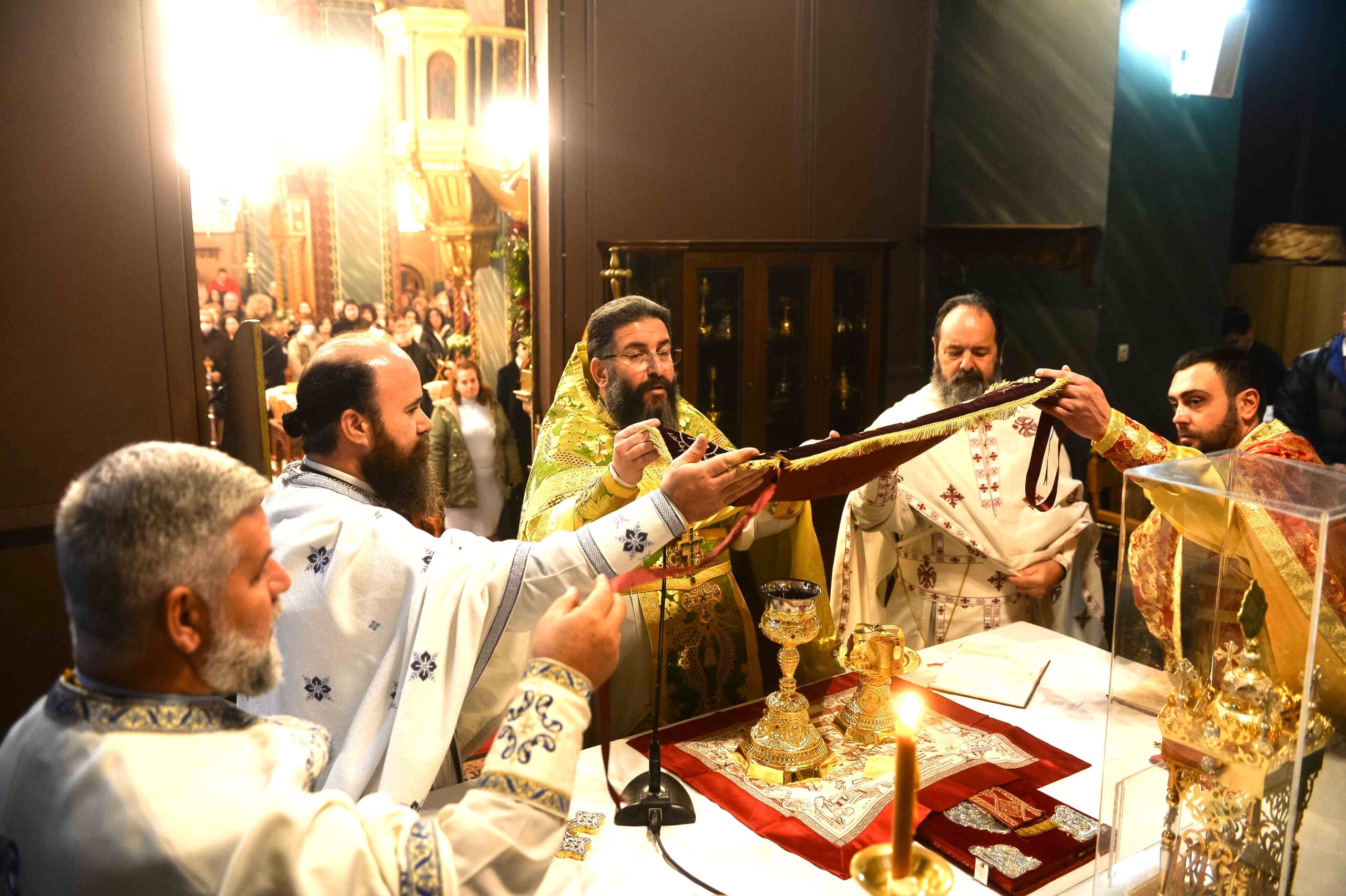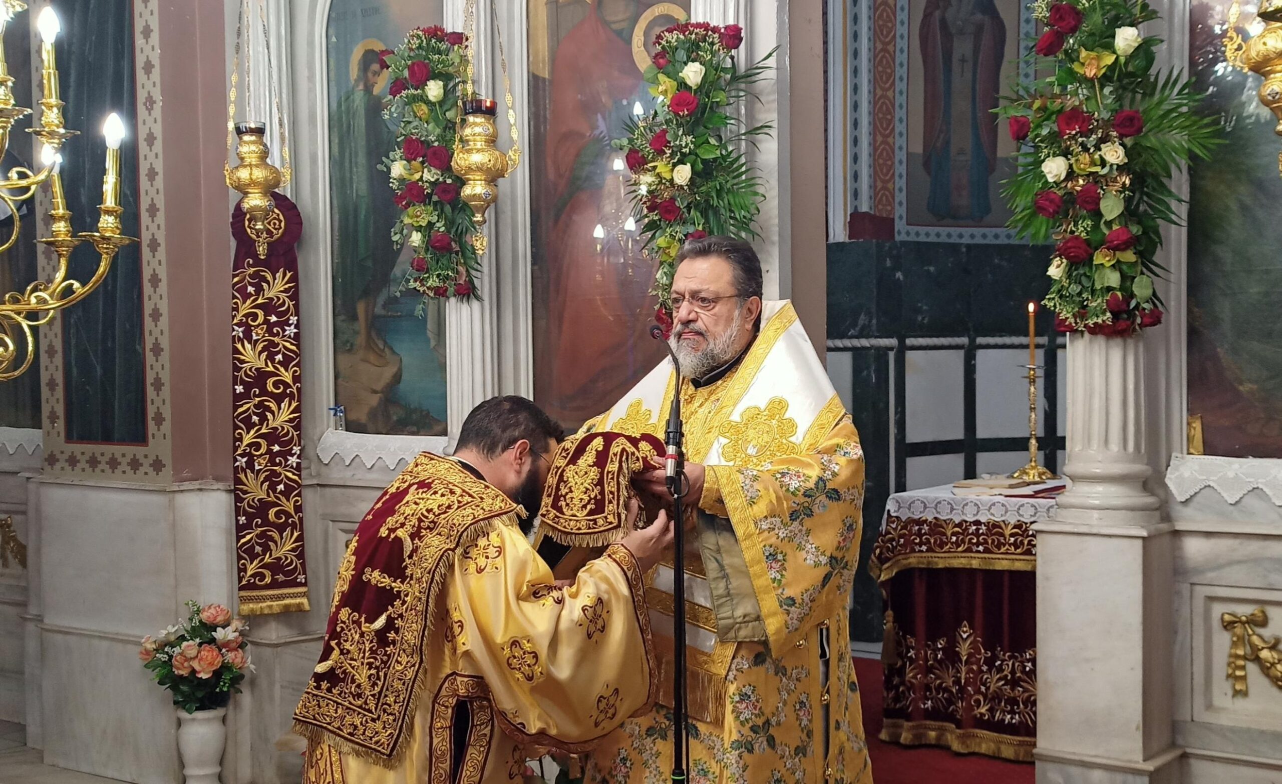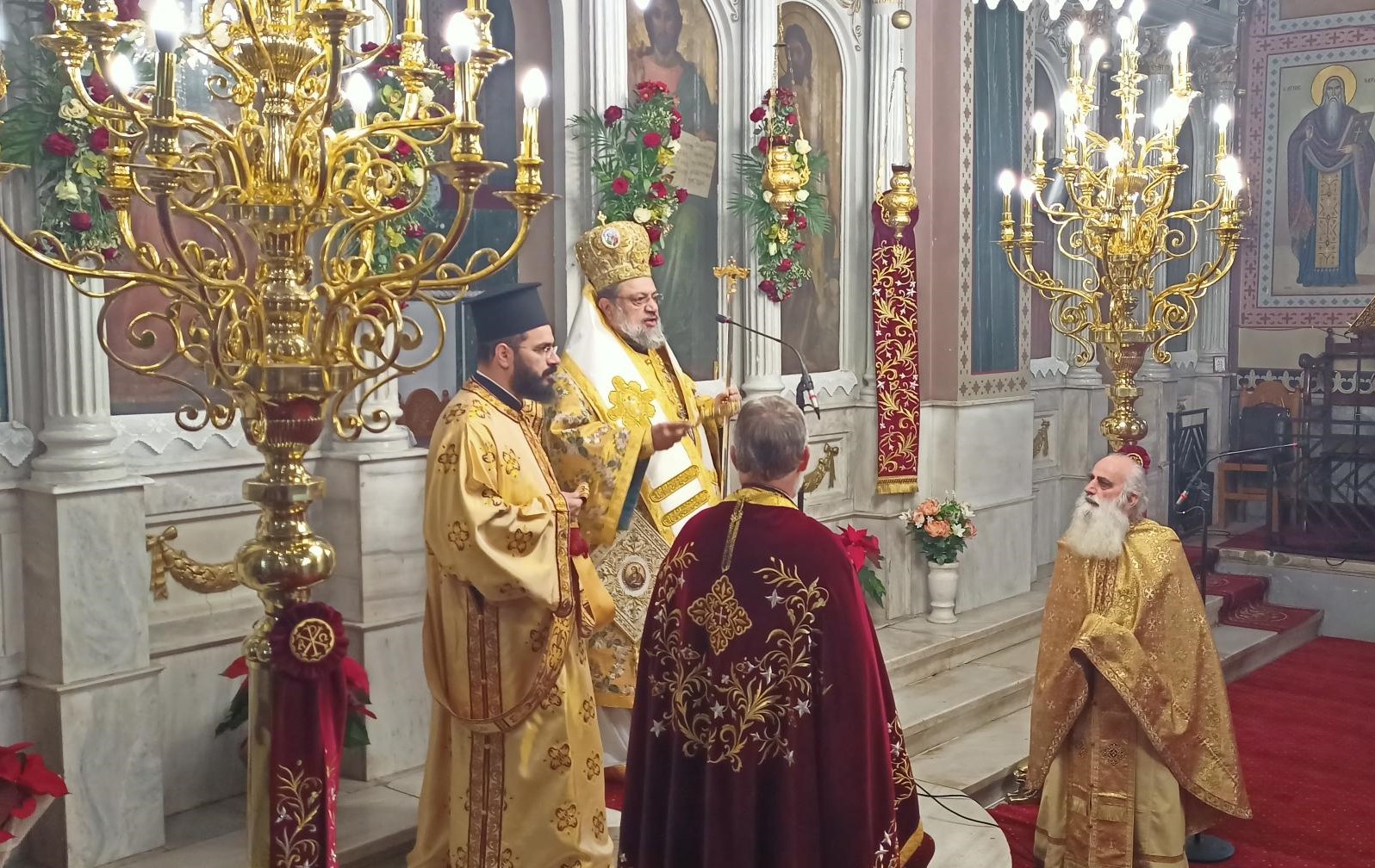 Στον Ιερό Ναό του Αγίου Ιωάννου Καλαμάτας προέστη της πανηγυρικής Θείας Λειτουργίας ο Πρωτοσύγκελλος της Ιεράς Μητροπόλεως Μεσσηνίας Αρχιμ. Φίλιππος Χαμαργιάς, συμπαραστατούμενος από κληρικούς της πόλεως της Καλαμάτας. Παρέστησαν ο Δήμαρχος Καλαμάτας κ. Αθ. Βασιλόπουλος και πολλά μέλη του Δημ. Συμβουλίου Καλαμάτας.