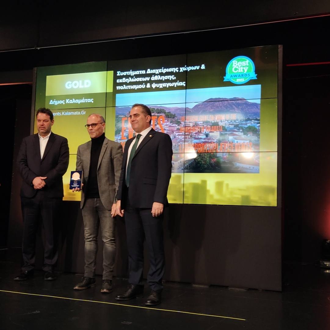 GOLD για την ψηφιακή πλατφόρμα Events.Kalamata.Gr (κατηγορία Διαχείριση Χώρων & Εκδηλώσεων).